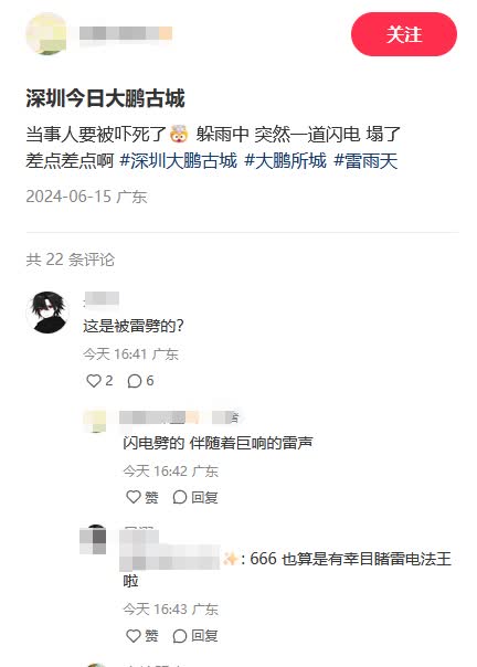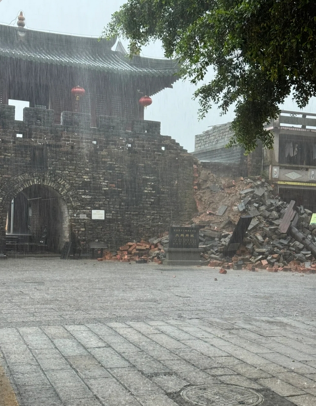 大公文匯網報道,今日(15日),有讀者爆料稱,深圳大鵬古城部分城牆發生倒塌事故,有目擊者表示係雷電擊中所致。