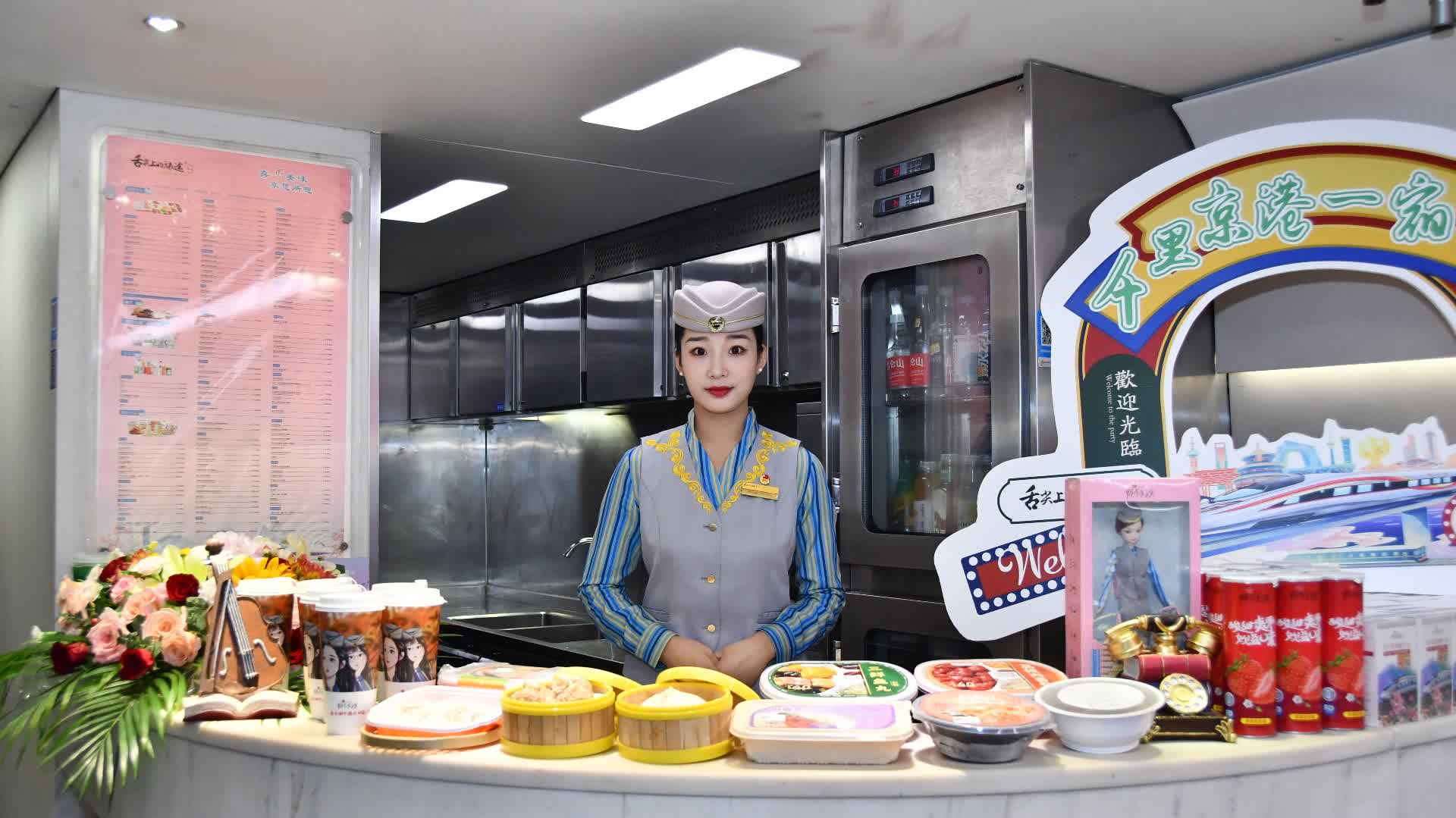 為方便夜間和早晨的用餐需求,動車餐飲公司根據線路特色,特地準備了港式風味荔枝肉套餐、三鮮魚丸套餐、蝦肉餛飩麵、蜜汁叉燒腸粉等具有港式風味的餐食,打造舌尖上的美食之旅。同時,在動臥車廂設置了獨立的餐牌,方便旅客了解和選擇餐食品種,並通過暢行碼快速點餐。