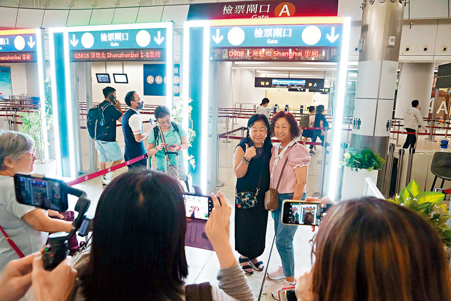 二是通關模式方便快速,由原普速直通車發車、終到站「兩地兩檢」通關模式,改為高鐵列車統一在香港西九龍站實行「一地兩檢」,通關時間大幅壓縮。三是通達範圍更加廣泛,由原普速直通車跨境旅客僅能從北京、上海、香港三個站點出發或抵達,改為旅客可在京港、滬港高鐵列車沿線的石家莊、廣州、深圳北、杭州東等多個站點出發或到達,旅客跨境旅行更方便。