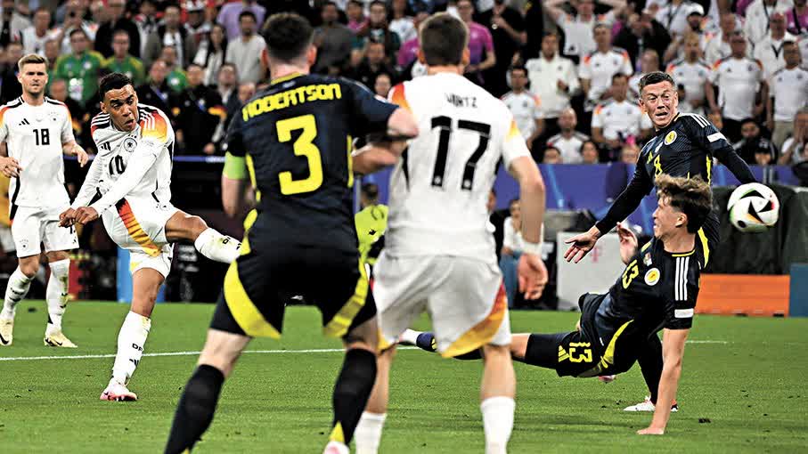 擁有主場之利的德國隊,在本港時間15日凌晨的歐國盃接幕戰踢得十分輕鬆,科利安華迪斯及穆斯亞拿上半場早段已憑兩記精彩射門雙雙取得入球,加上蘇格蘭完半場前有後衛波迪奧斯紅牌被逐兼被罰12碼,德國再由夏維斯12碼建功上半場遙遙領先至3:0。換邊後德足由後備入替的富克洛及安利簡恩再入兩球,最終以5:1大勝憑魯迪格烏龍球破蛋的蘇格蘭,於今屆歐國盃旗開得勝。