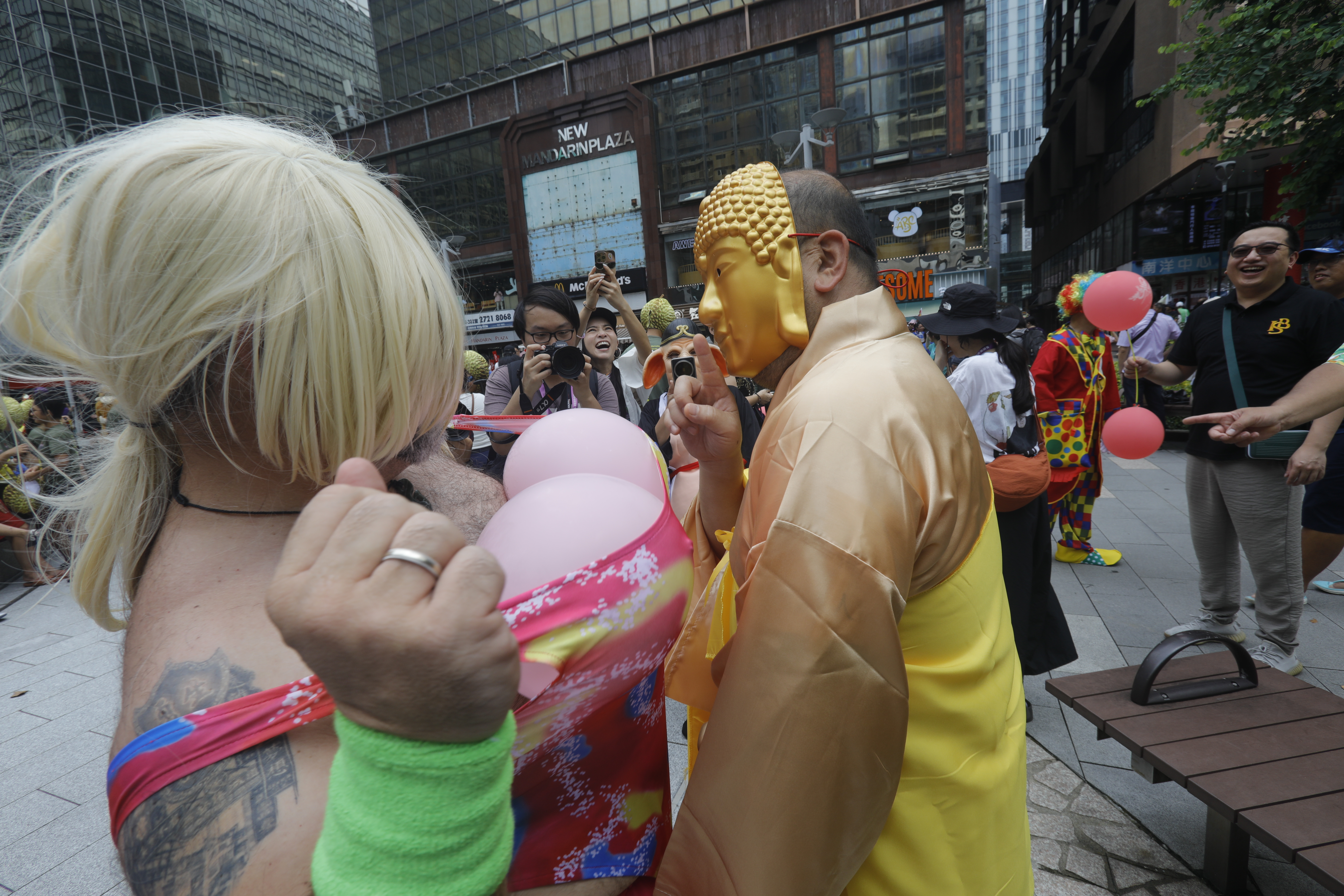 值得留意的是,去年獲奧斯卡8項提名,由瑪格羅比和萊恩葛斯林主演的《芭比Barbie》電影在全球各地引發了巨大的粉紅旋風,今年亦有外國人以芭比打扮吸睛,甚至試圖色誘參加者,被飾演西遊記如來佛祖的選手以「阿彌陀佛」抵擋。二人的互動交流為一眾市民及遊客帶來歡樂。