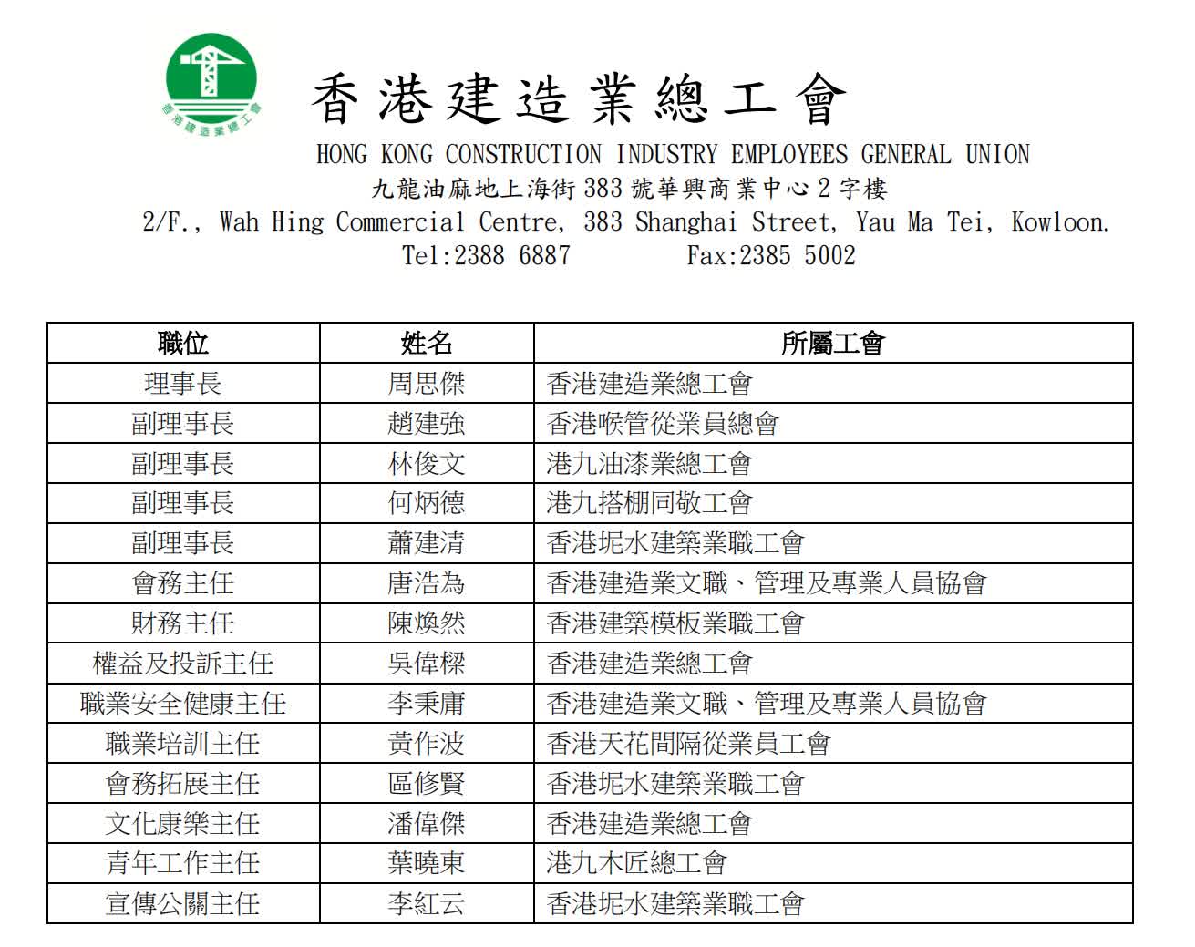 關鍵詞:香港建造業總工會周思傑