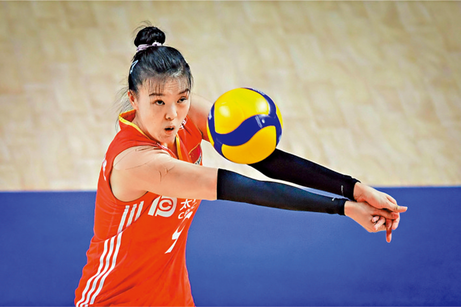 首局初段,國家隊尚未入局,發球和扣殺都出現失誤,一度落後2:6,主教練蔡斌叫暫停調整。調整過後,國家隊防守更加硬朗,在王媛媛的出色發揮下不斷追分,中段更是追到14:14。末段交替領先,最後時刻袁心玥貢獻關鍵攔網拿下局點,加上吳夢潔扣殺得手完成該局最後一分,國家隊先贏25:23。