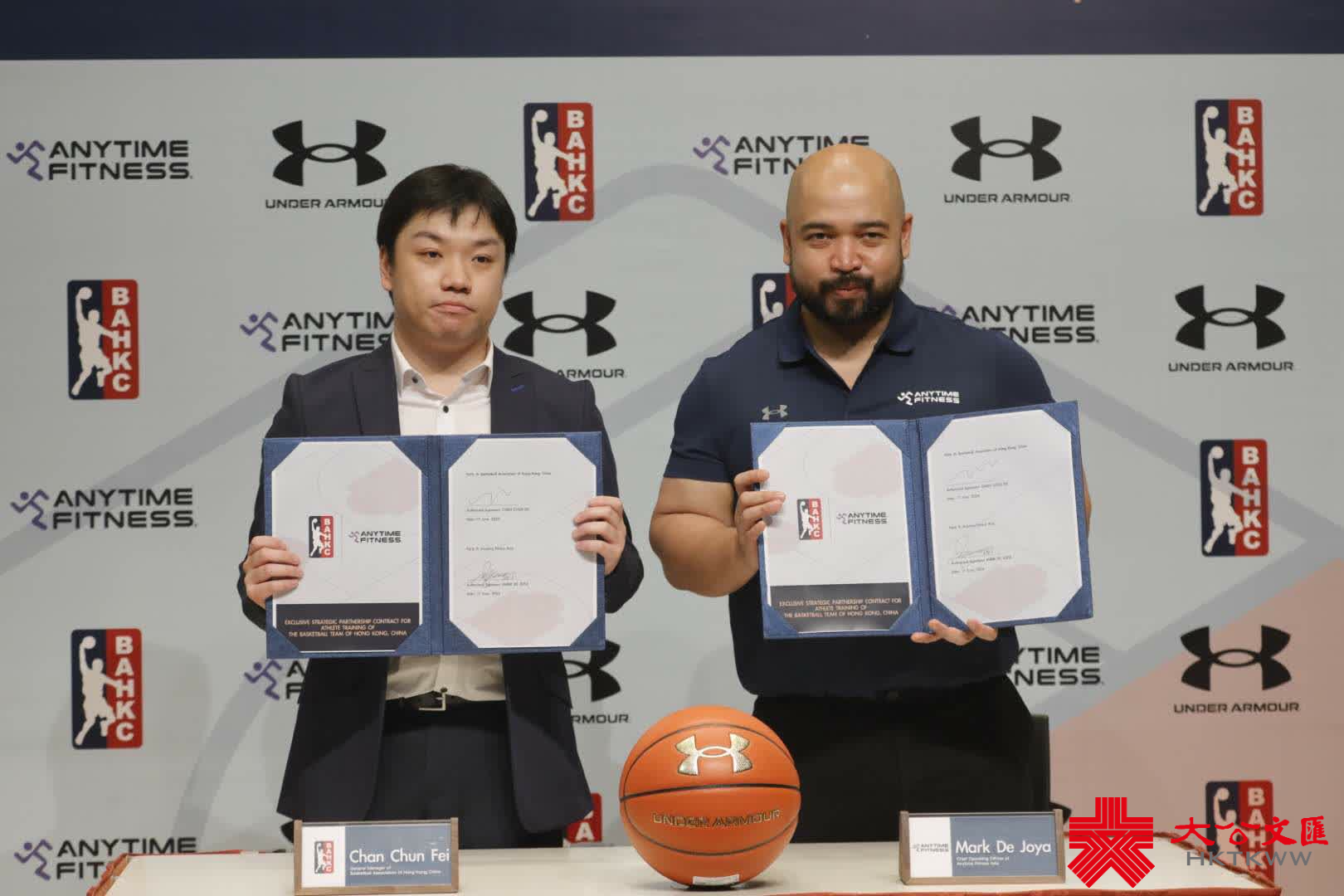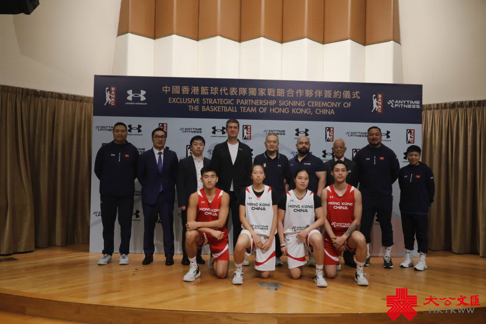 (大公文匯全媒體記者 王俊傑)中國香港籃球總會(籃總)今日(17日)聯同UNDER ARMOUR和Anytime Fitness舉行「獨家戰略合作夥伴簽約儀式」。中國香港籃球男子隊總領隊莫耀強感謝兩大機構分別擔任「裝備及青訓系統合作夥伴」和「球員訓練合作夥伴」,以先進裝備、高水平比賽和系統性訓練,培育香港新一代的籃球精英。