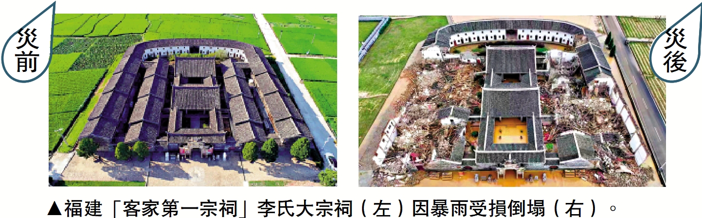 受連日強降雨影響,福建龍岩、南平、三明、寧德等市出現不同程度災情險情。據福建省防汛辦統計,截至6月17日20時,本輪強降雨已造成福建省52.37萬人受災。福建「客家第一宗祠」李氏大宗祠因暴雨坍塌。