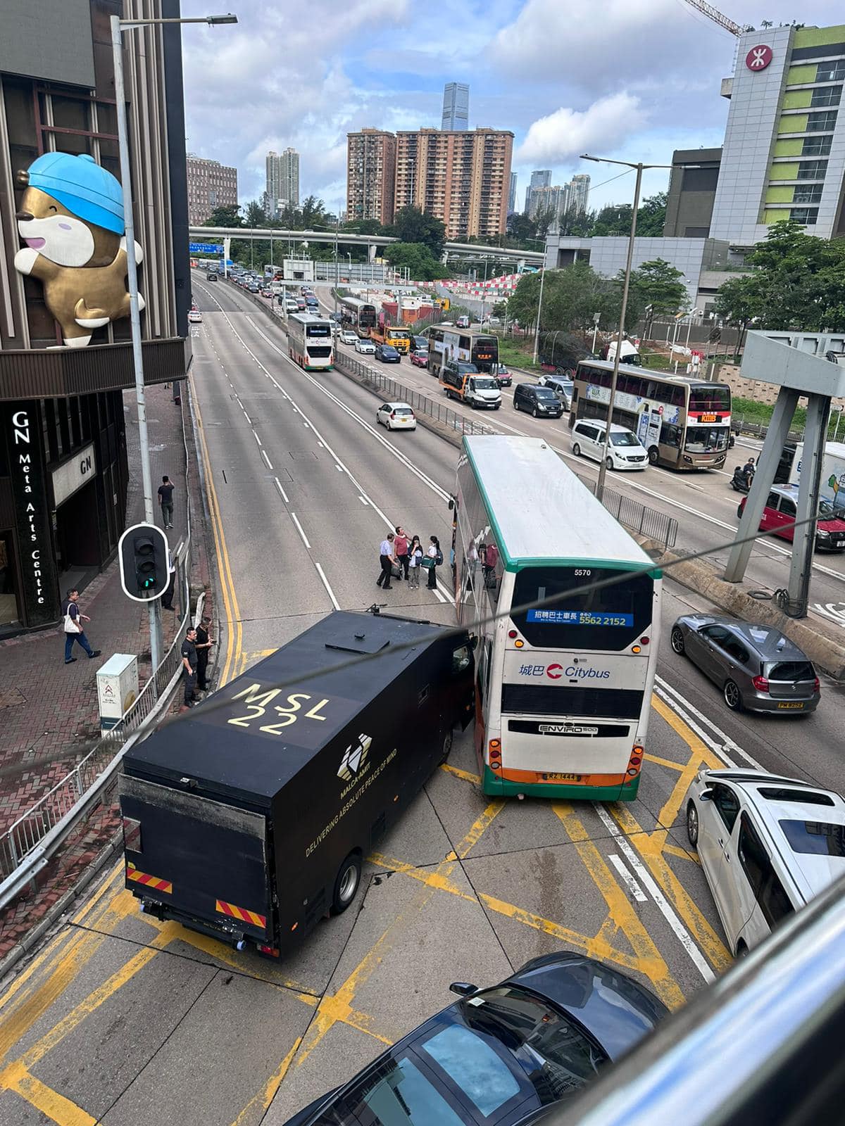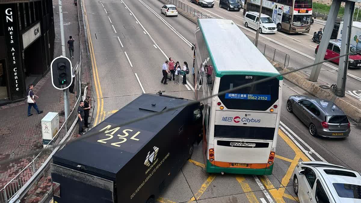大公文匯全媒體報道,紅磡發生交通意外。事發今早(19日)8時48分,一輛解款車與一輛城巴沿蕪湖街左轉出漆咸道北時意外相撞,解款車車頭右側撞向城巴左側車尾,現場有警員持槍戒備。意外中無人受傷,漆咸道北往紅隧及尖沙咀方向交通受阻。