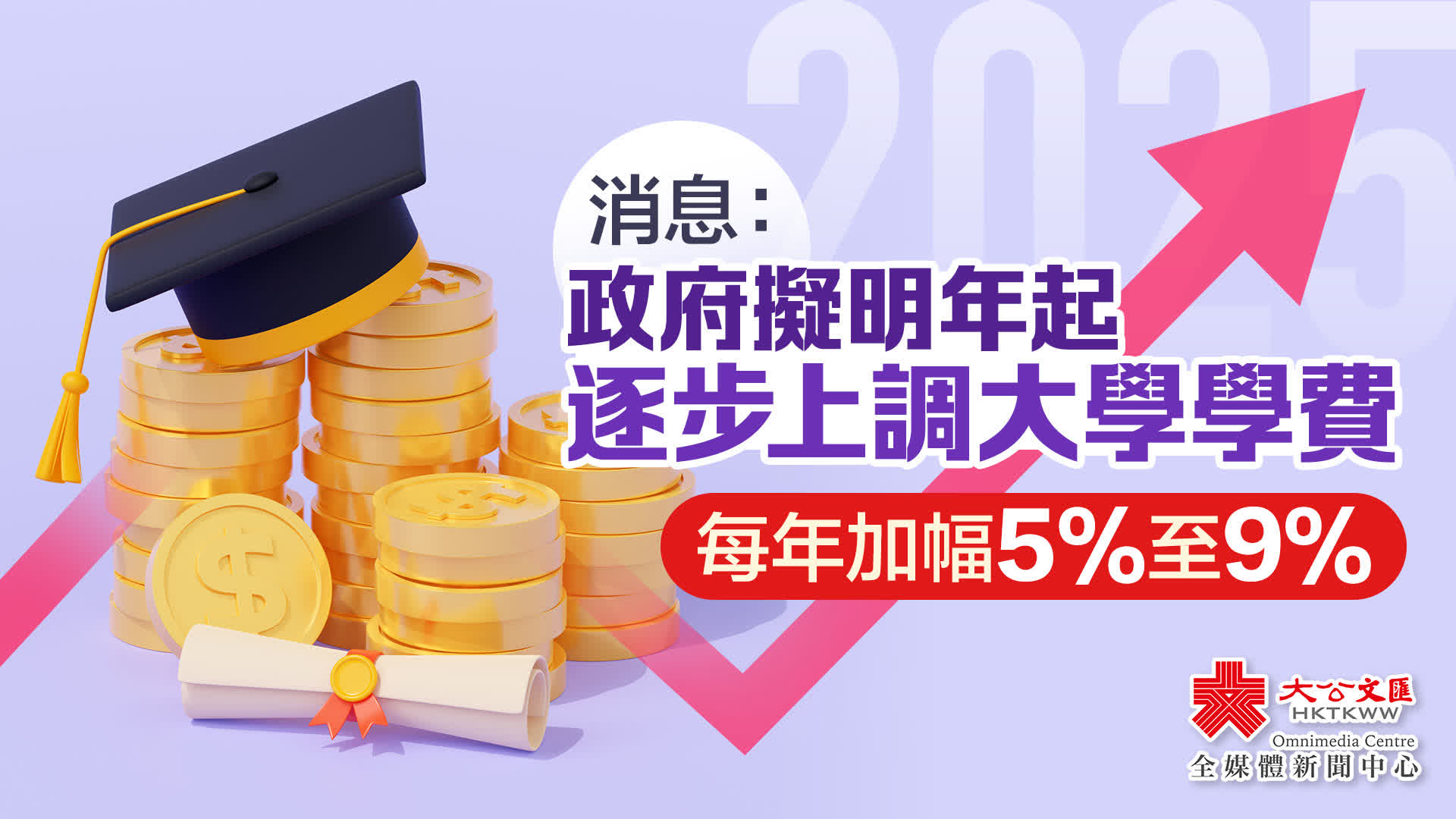 今日(19日)有消息指,政府擬於2025/26學年起,逐步上調本港8間資助大學學費。據悉,政府初步計劃明年起連續3年加學費,每年加幅5%-9%,料於日內公布加學費建議。