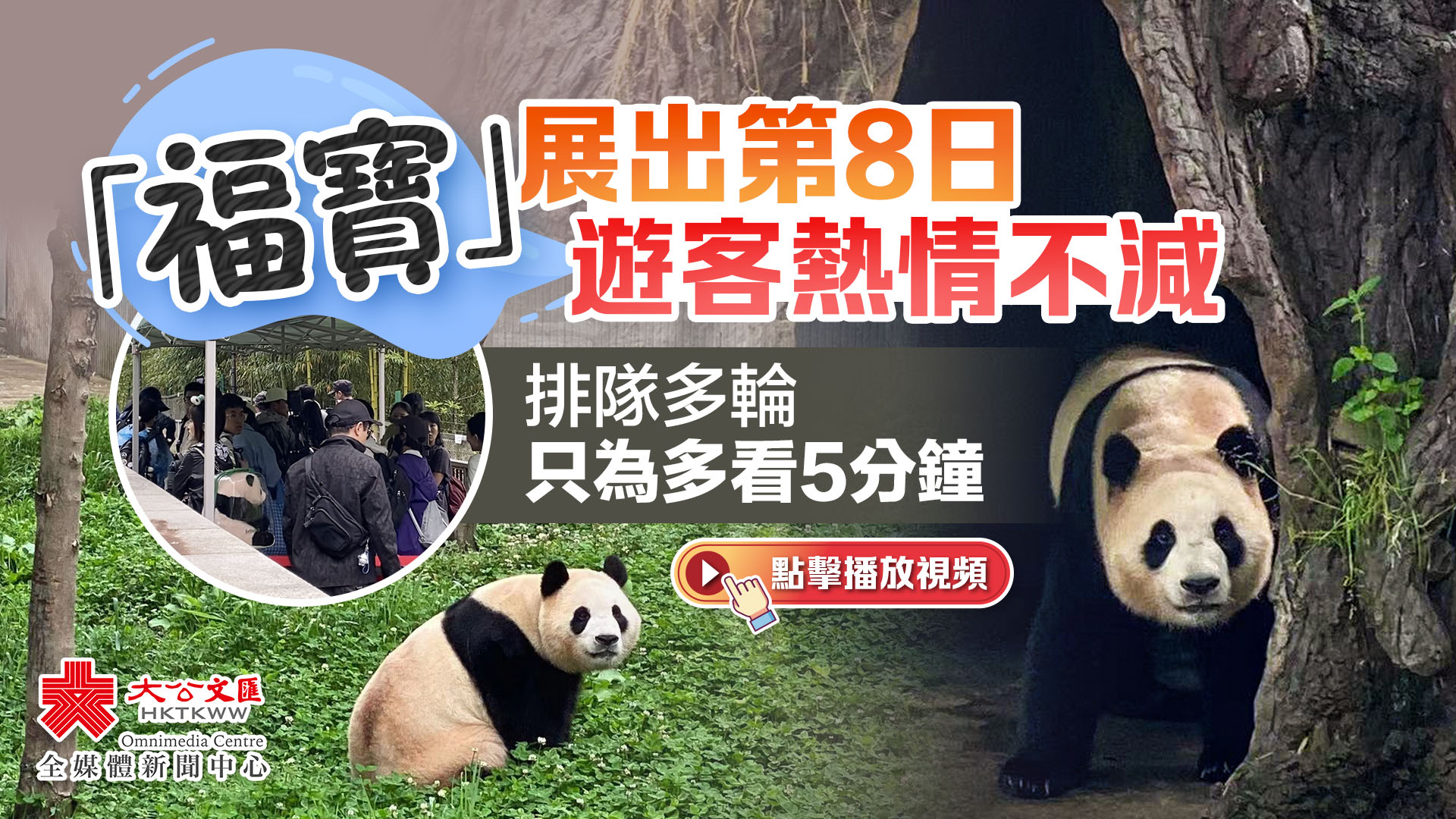 記者在現場看到,不到10分鐘,現場已經聚集了百餘名遊客,大家有序排隊,充滿期待地等候着與「福寶」的見面。