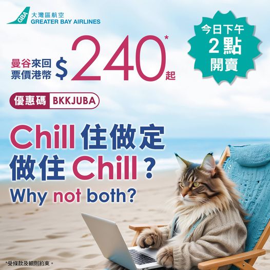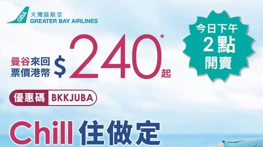 大公文匯全媒體報道,不少市民都準備暑假去旅行。大灣區航空今日(19日)起推出曼谷機票優惠,來回只需240元起,包7kg上機行李。訂票時僅需在官方網站預訂時輸入優惠碼「BKKJUBA」,即享超值票價。航班的出發日期由6月20日(星期四)至9月30日(星期一),包部分暑假旺季。