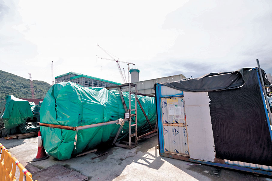 甫登上島,映入記者眼簾的是一組高約40米至60米的巨型鐵架,原來它大有乾坤,內部有各司其職的機電組件,未來將構成人工島廢物主處理大樓,鐵架旁邊是排氣煙囪。