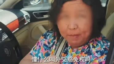 16日,余某駕駛着掛有使館車牌的轎車停在道路中間,導致堵車,她本人態度惡劣。