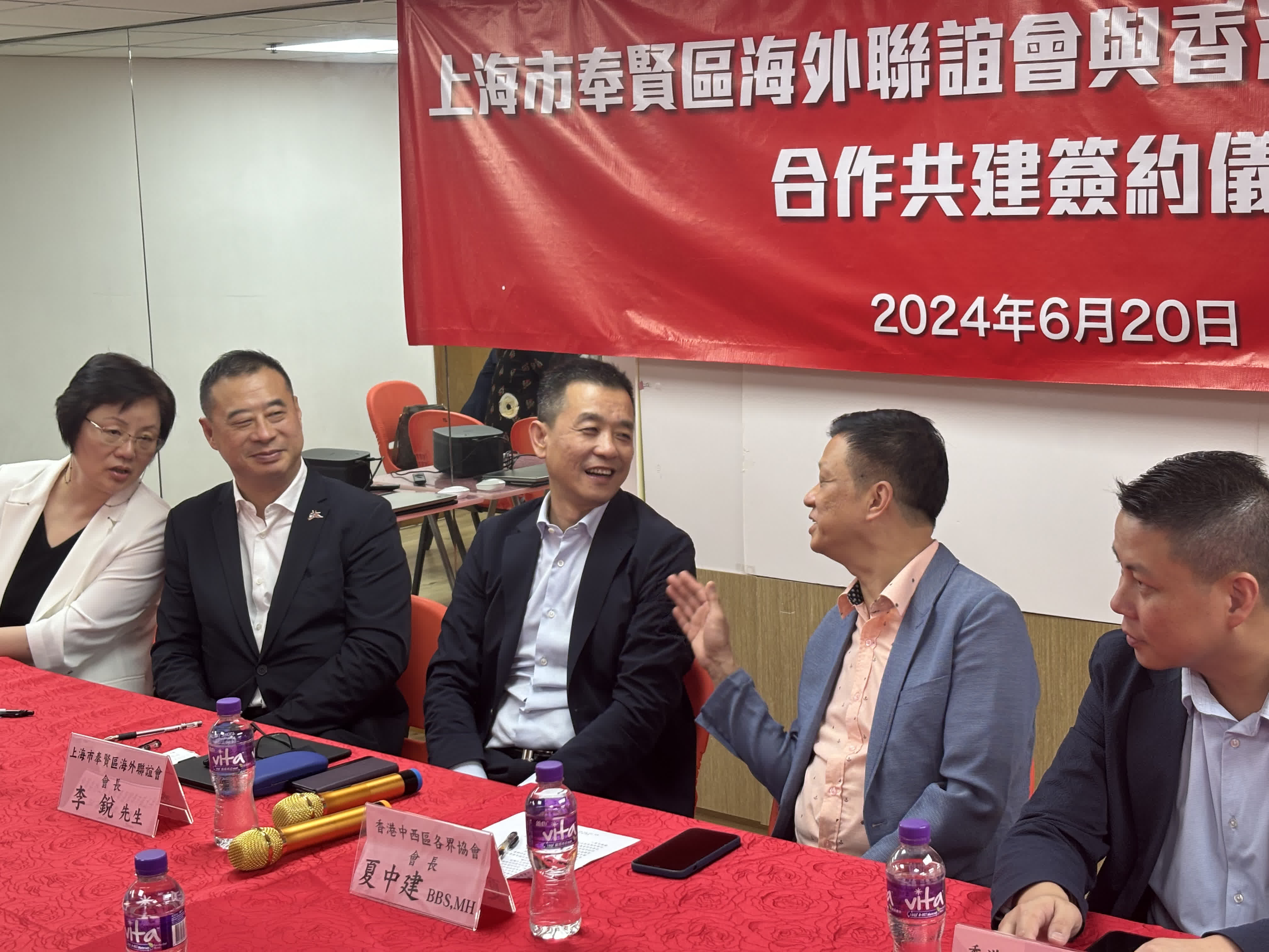 大公文匯網報道,今日(6月20日),香港中西區各界協會與上海奉賢區海外聯誼會在香港舉行合作協議簽約儀式,就促進兩地在經濟發展、社會建設、教育文化等領域的交流合作建立機制。上海市奉賢區海外聯誼會會長李銳、中央政府駐港聯絡辦港島工作部副部長楊成偉、香港中西區民政事務專員梁子琪、香港中西區各界協會會長夏中建等二十多名嘉賓出席並見證簽約。