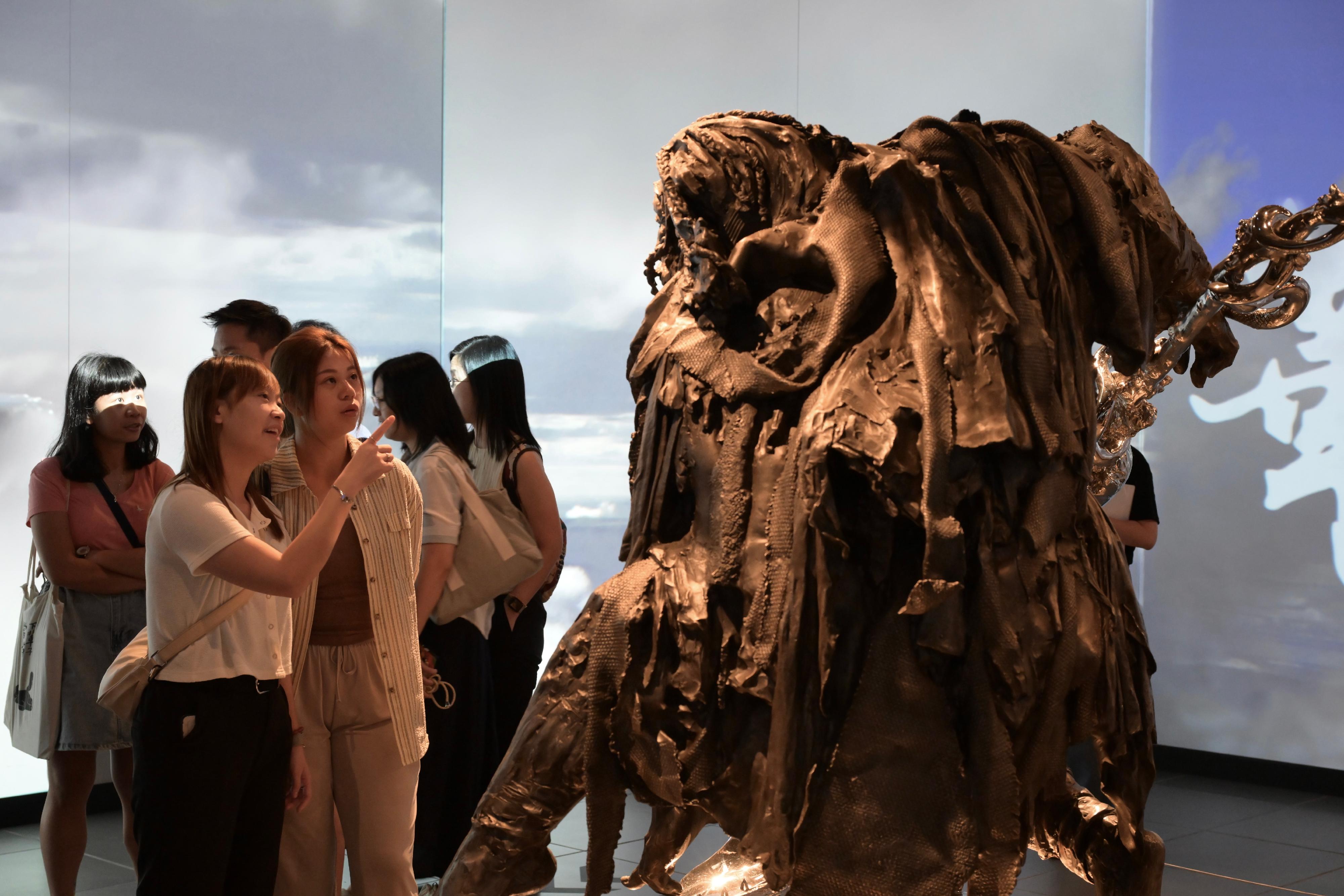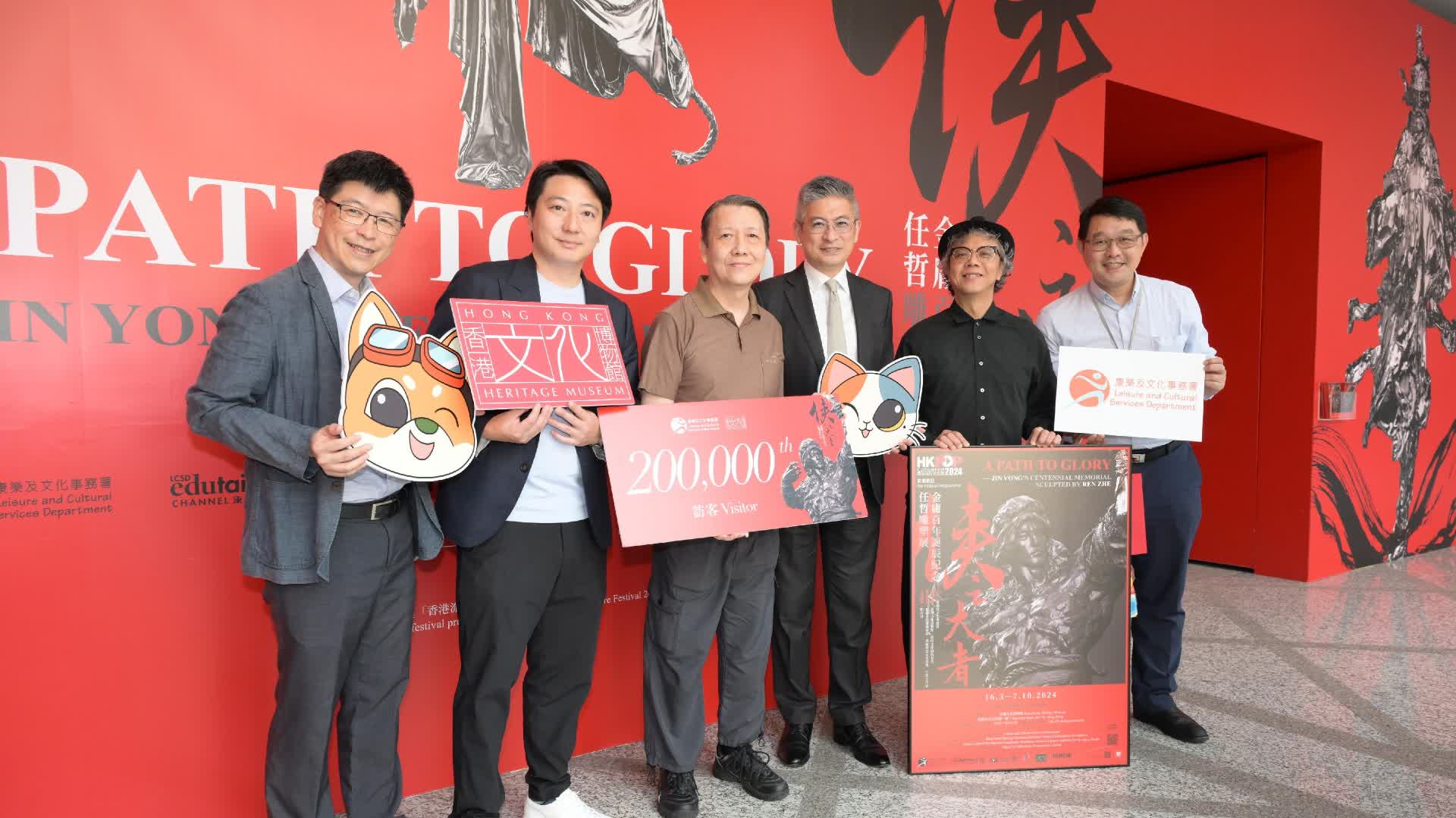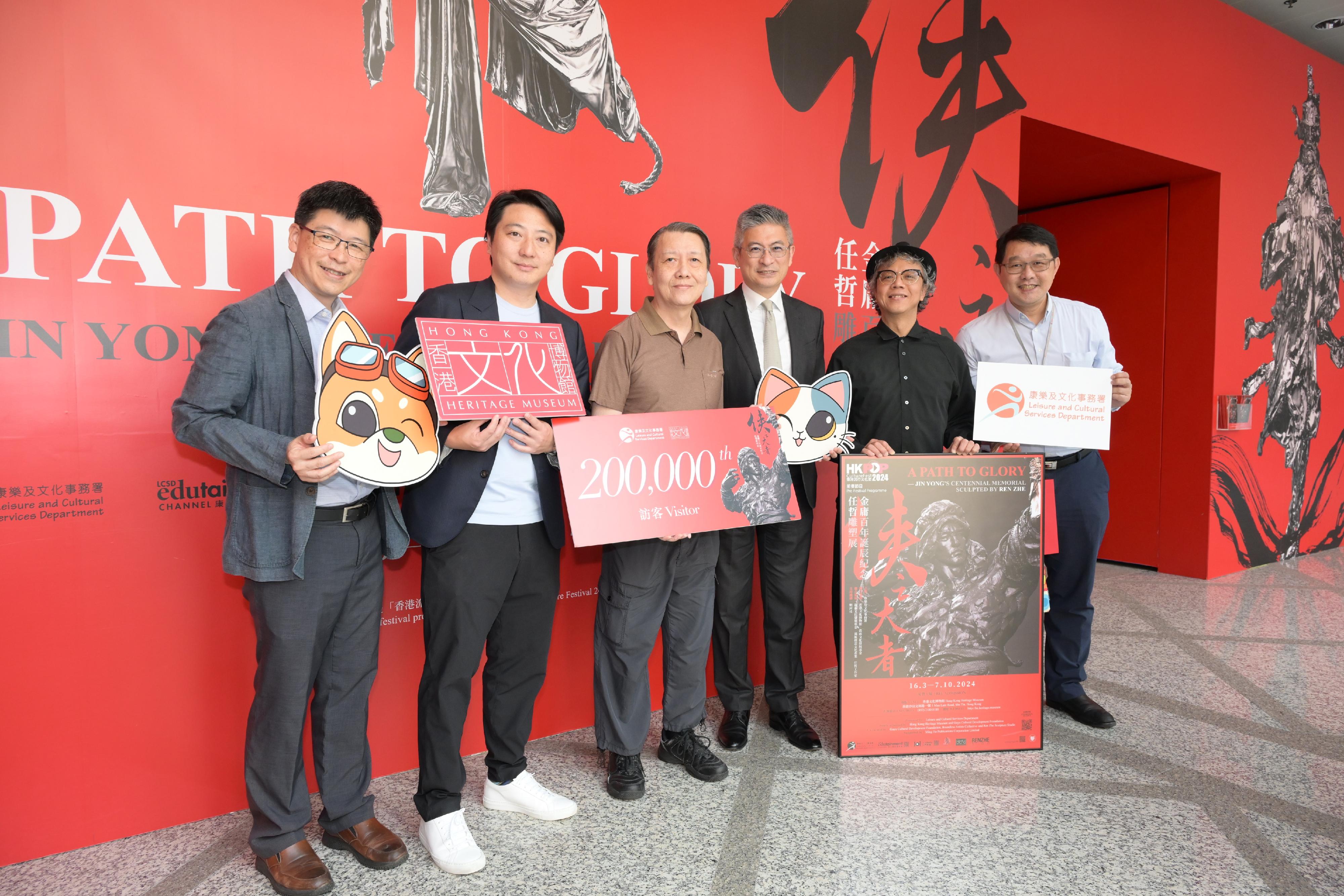 大公文匯全媒體報道,香港文化博物館為紀念查良鏞博士(金庸)百年誕辰舉辦的「俠之大者──金庸百年誕辰紀念·任哲雕塑展」,自3月16日開展以來廣受市民及旅客歡迎,已有超過20萬人次參觀,其中約有3萬名為旅客。文化體育及旅遊局副局長劉震、穀雨文化發展基金創辦人兼聯合策展人方圓明和參與製作展覽多媒體裝置的藝術家黃宏達昨日(21日)親臨博物館,向第20萬名參觀者送上別具心思的紀念品,包括由雕塑家任哲製作及附方圓明和任哲親筆簽名的限量版圖錄、展覽海報,以及香港文化博物館與時裝品牌「Sparkle by Karen Chan」合作設計的禮品包。