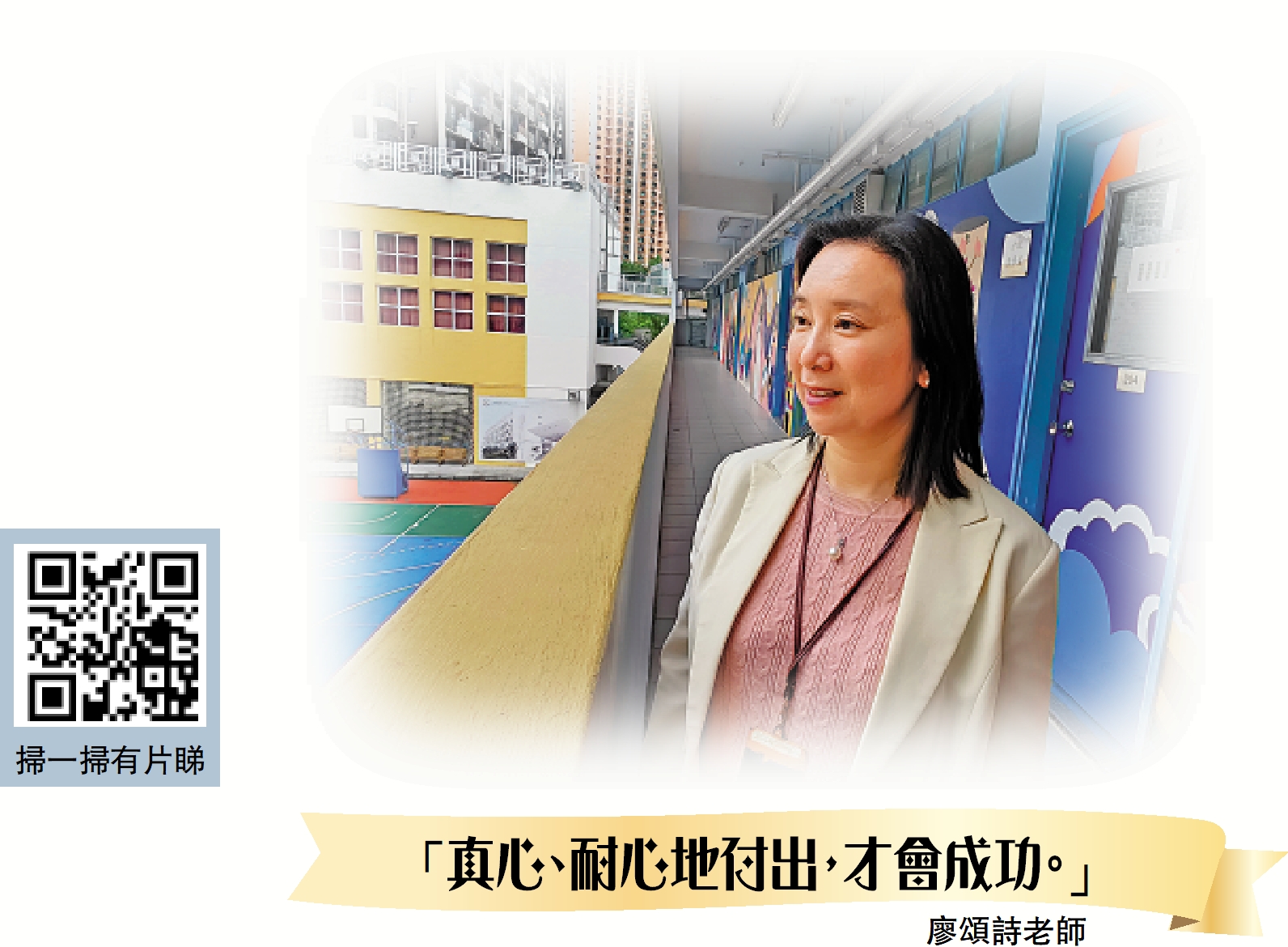 春風化雨,「學校由面臨殺校,到現在每年級都收爆學生,成為叩門的熱門中學。」回顧26年的教育工作,廖老師慨嘆:「用心付出好重要,雖然有時付出和收穫未必成正比,但只有真心、耐心地付出才會成功,我希望教育界的同工、老師、學生,關心社會、關心國家、愛惜自己。」