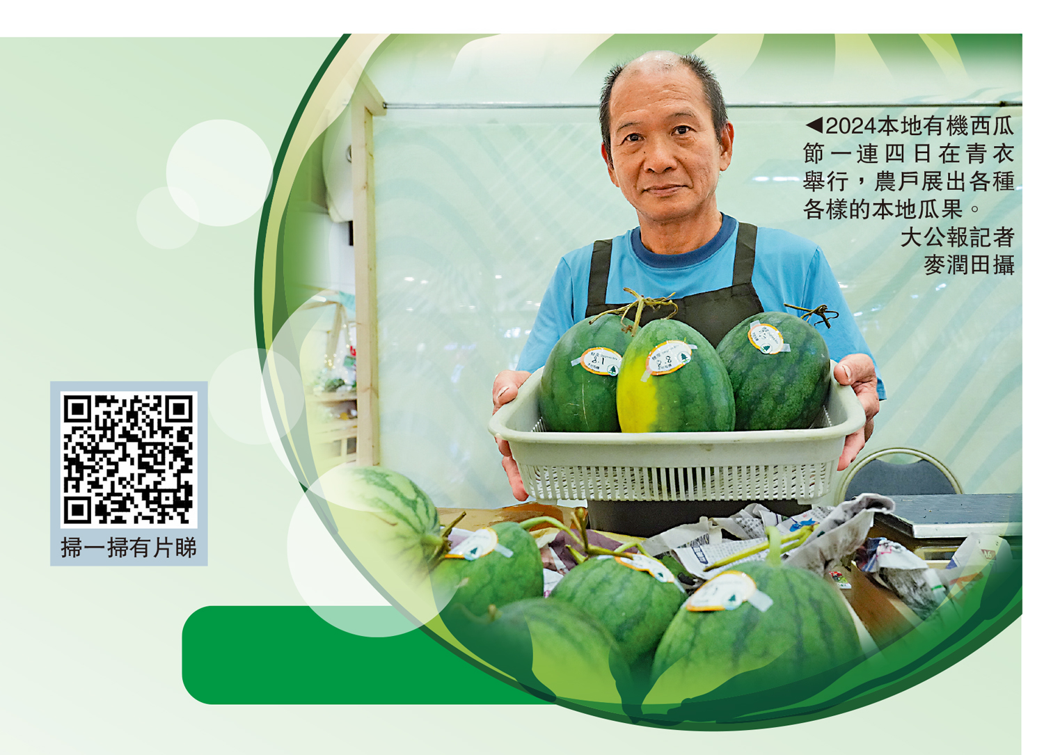 佘先生從事有機種植近15年,他坦言種植業不簡單,日曬雨淋、日晚人手捉蟲等苦工,但市民對有機農作物的支持,成為推動他做好農務的動力,「經常有客人問我,幾時有西瓜食,有人喜歡我種的西瓜,我真的覺得很暖心。」