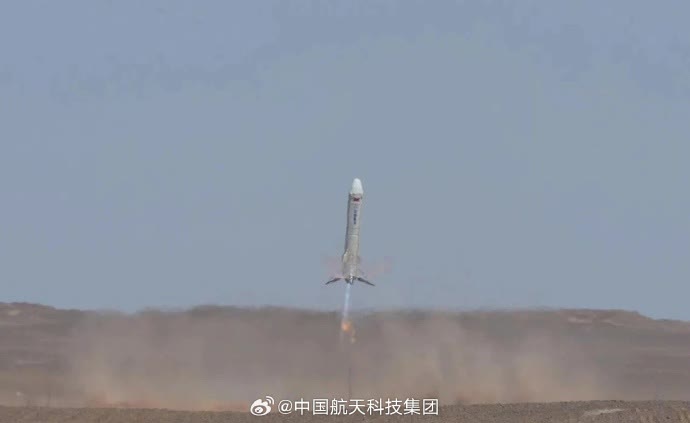 下午1時許,在酒泉衛星發射中心,3.8米直徑的重複使用運載火箭新技術驗證箭豎立在場坪發射台上,3台變推液氧甲烷發動機點火,噴出藍色尾焰,箭體上升至約12公里高度,中心發動機調節推力,火箭受控下降,在距離地面50米處,四條着陸腿展開,隨後火箭緩速下降,高度趨近於零,穩穩落在回收場坪,實現定點垂直軟着陸。