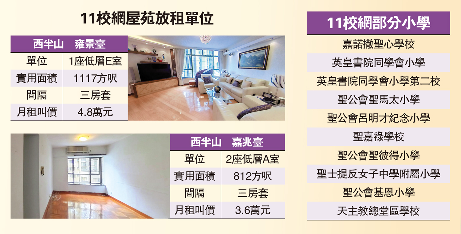 他稱,專才家庭租樓需求上升,加上近年樓市氣氛觀望,部分家長轉買為租,令名校網租盤渴求,現時11校網租盤粗略計不足500伙,較去年少約三至四成,租金按年升5%。