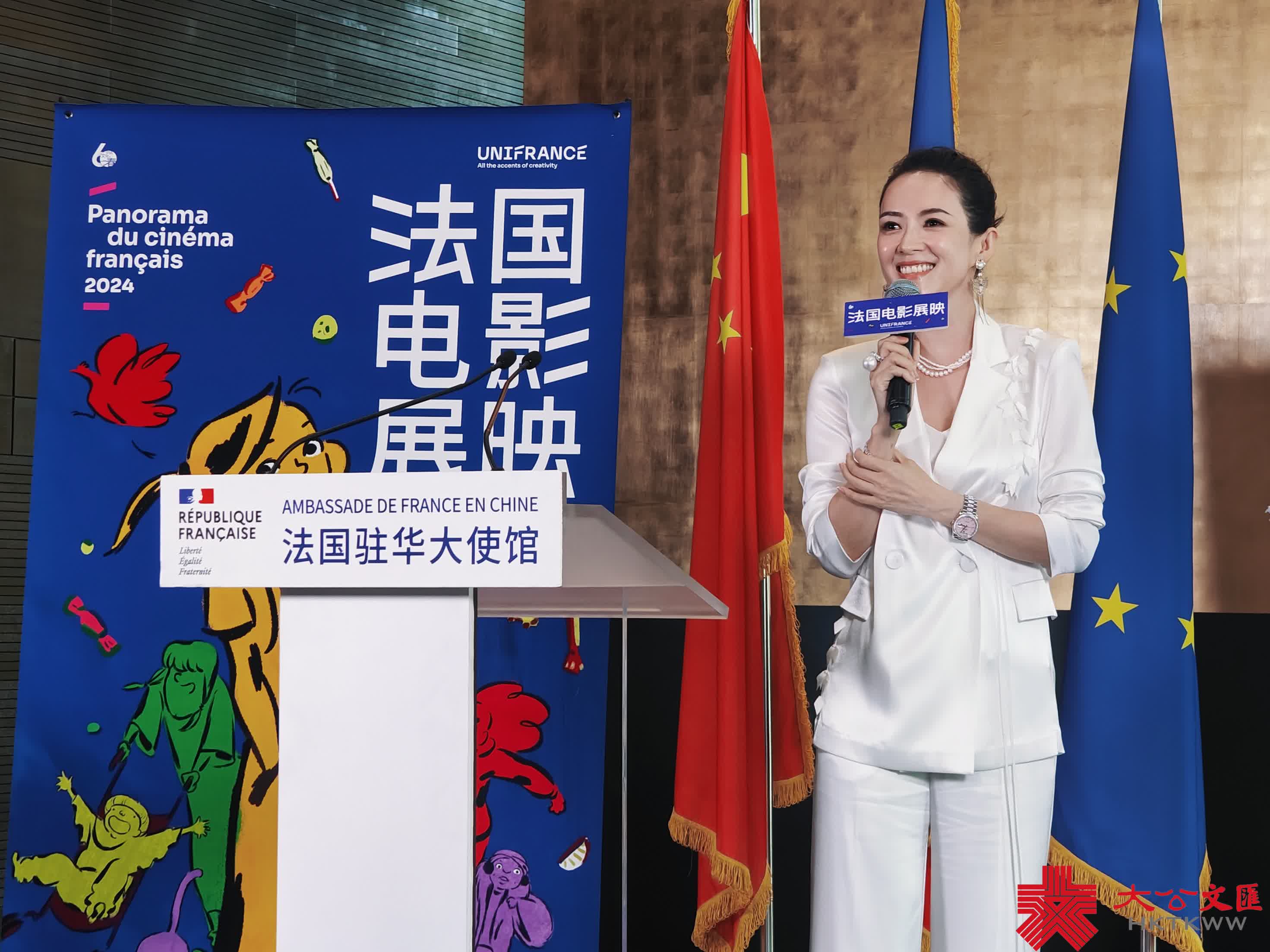 (大公文匯網記者 朱燁 北京報道)在中法建交60周年之際,迎來了第20屆法國電影展映。開幕式於今日(24日)下午在法國駐華大使官邸舉行。法國駐華大使白玉堂,2024年法國電影展映宣傳大使章子怡,法國電影人陳英雄、陳女燕溪、塞德里克·康等出席。