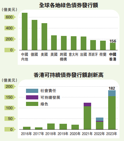 另外,特區政府是去年第四大政府綠色債券來源地,僅次於英國、德國和意大利,也是累計第五大政府綠色債券發行人。
