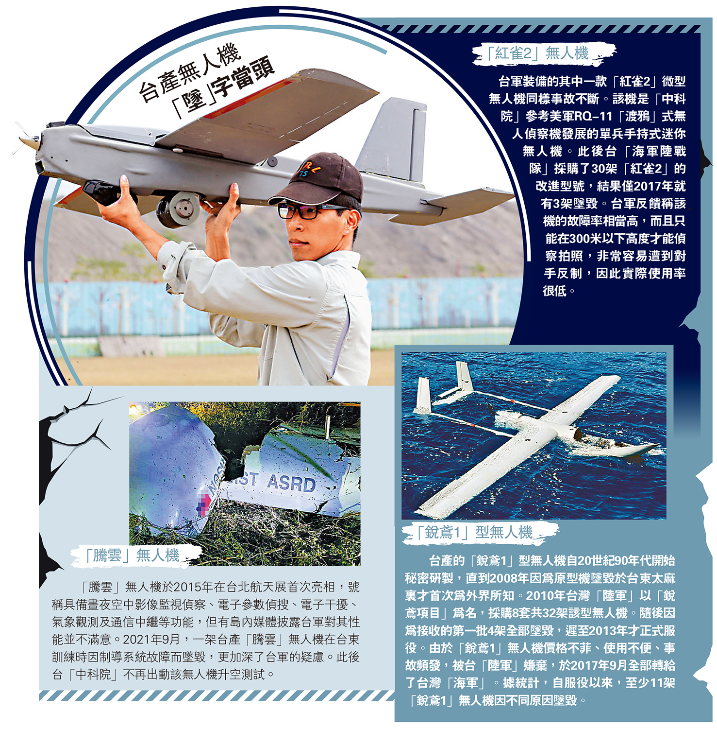 島內專家表示,台軍在無人機領域相關技術儲備薄弱,不但大部分核心設備需要進口,而且整合能力也遠遠落後,除了「騰雲」無人機在研製中發生墜毀事故外,台軍現役的其他無人機更是故障頻發。台防務部門急於構建無人機防禦系統,只會欲速而不達。