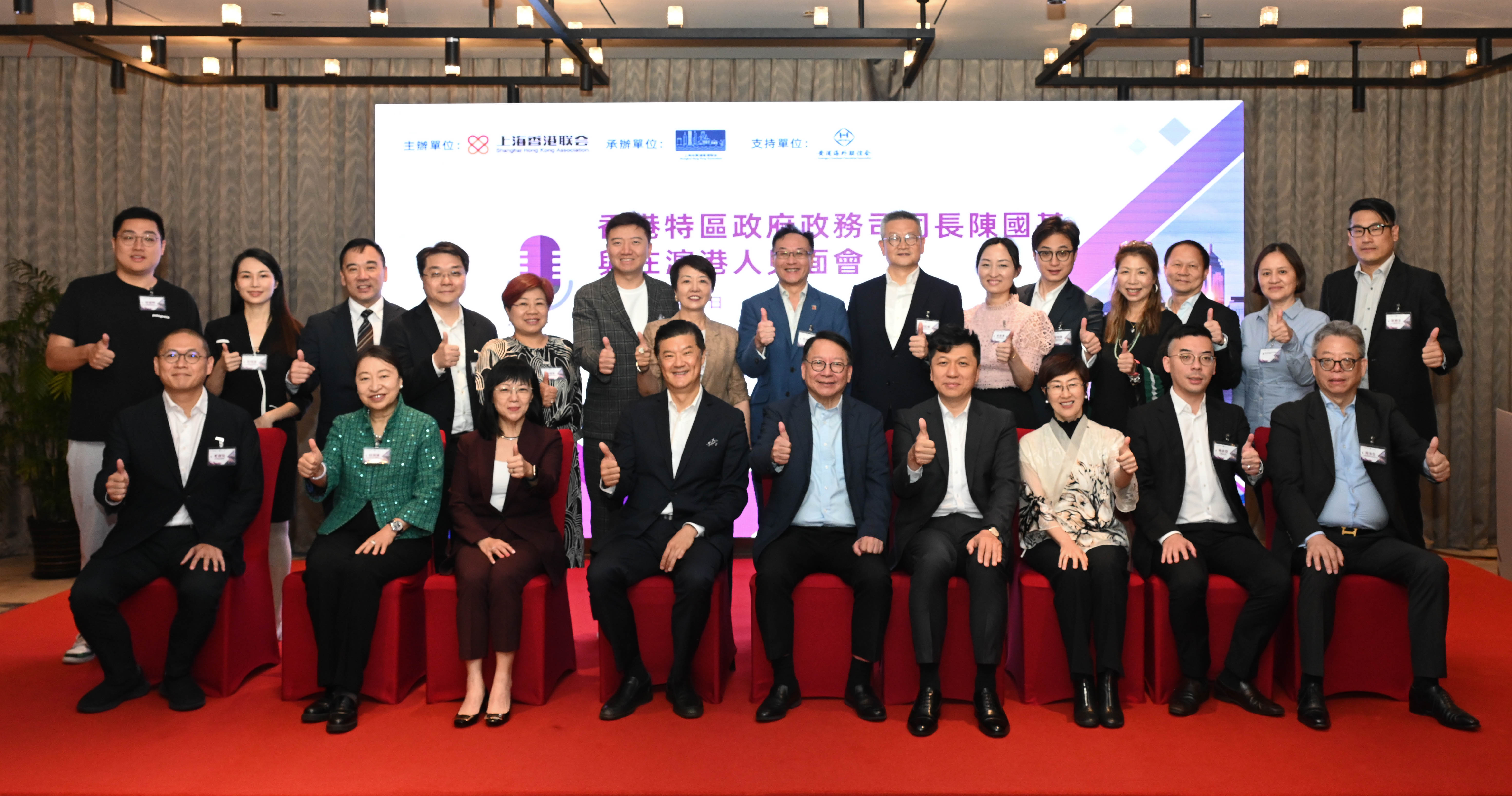 陳國基感謝上海香港聯會多年來對促進滬港合作的付出和貢獻。他鼓勵在滬港人和港商代表繼續推動香港積極融入國家發展大局,並多向上海的人才和企業推廣香港的獨特優勢,吸引其來港經商投資、就業創業,為香港注入發展動能,同時貢獻國家所需。