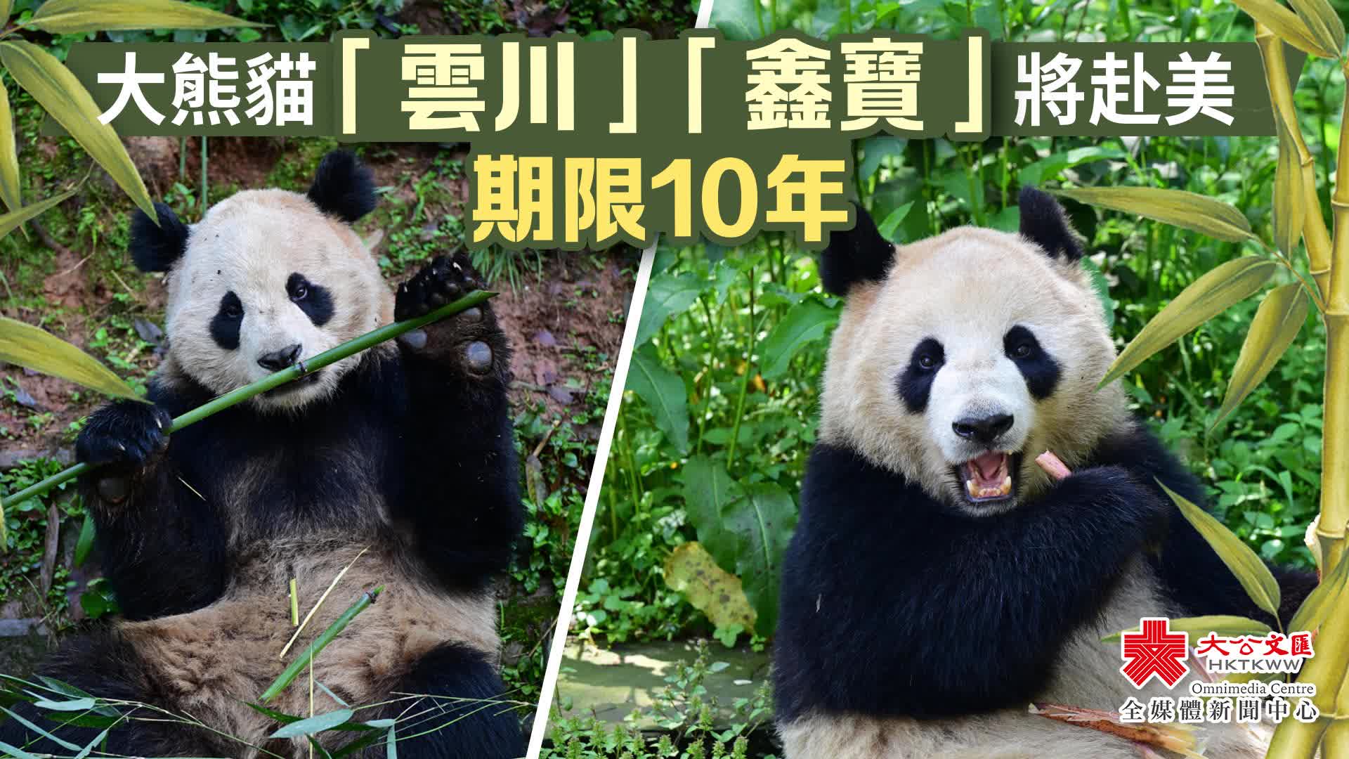 大熊貓「鑫寶」,雌性,2020年7月23日出生,溫柔乖巧。大熊貓「雲川」,雄性,2019年7月28日出生,聰明活潑。