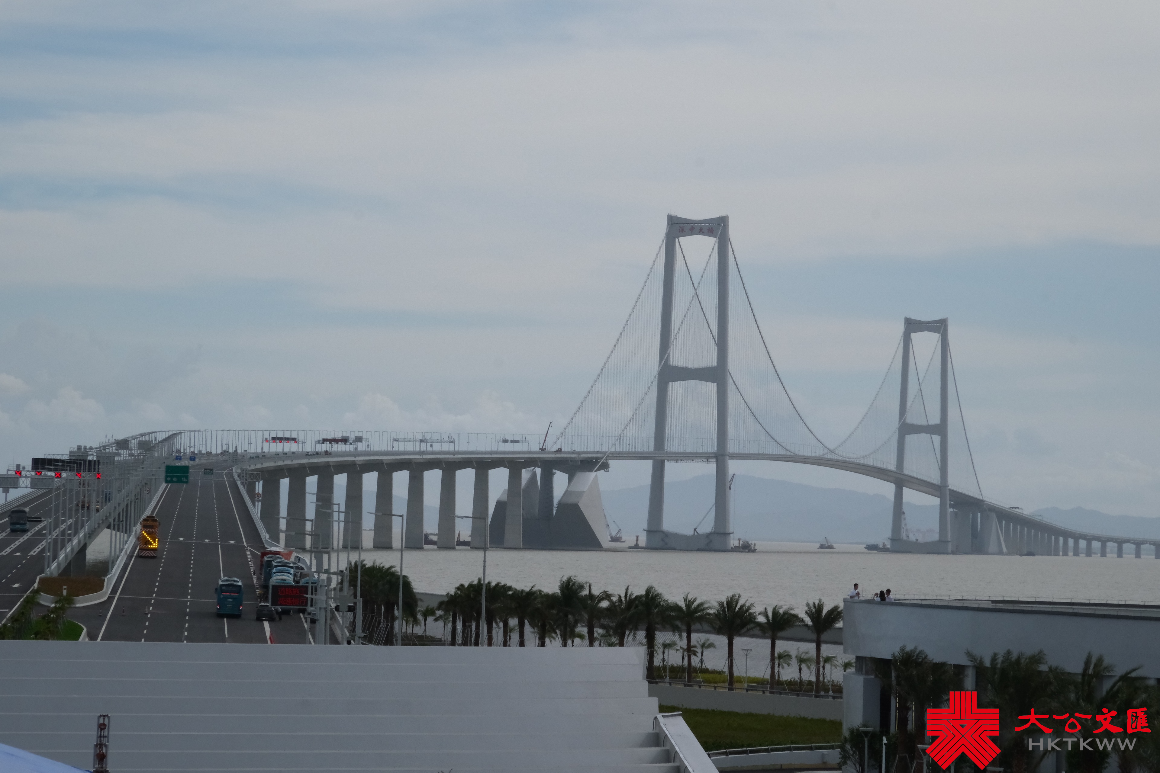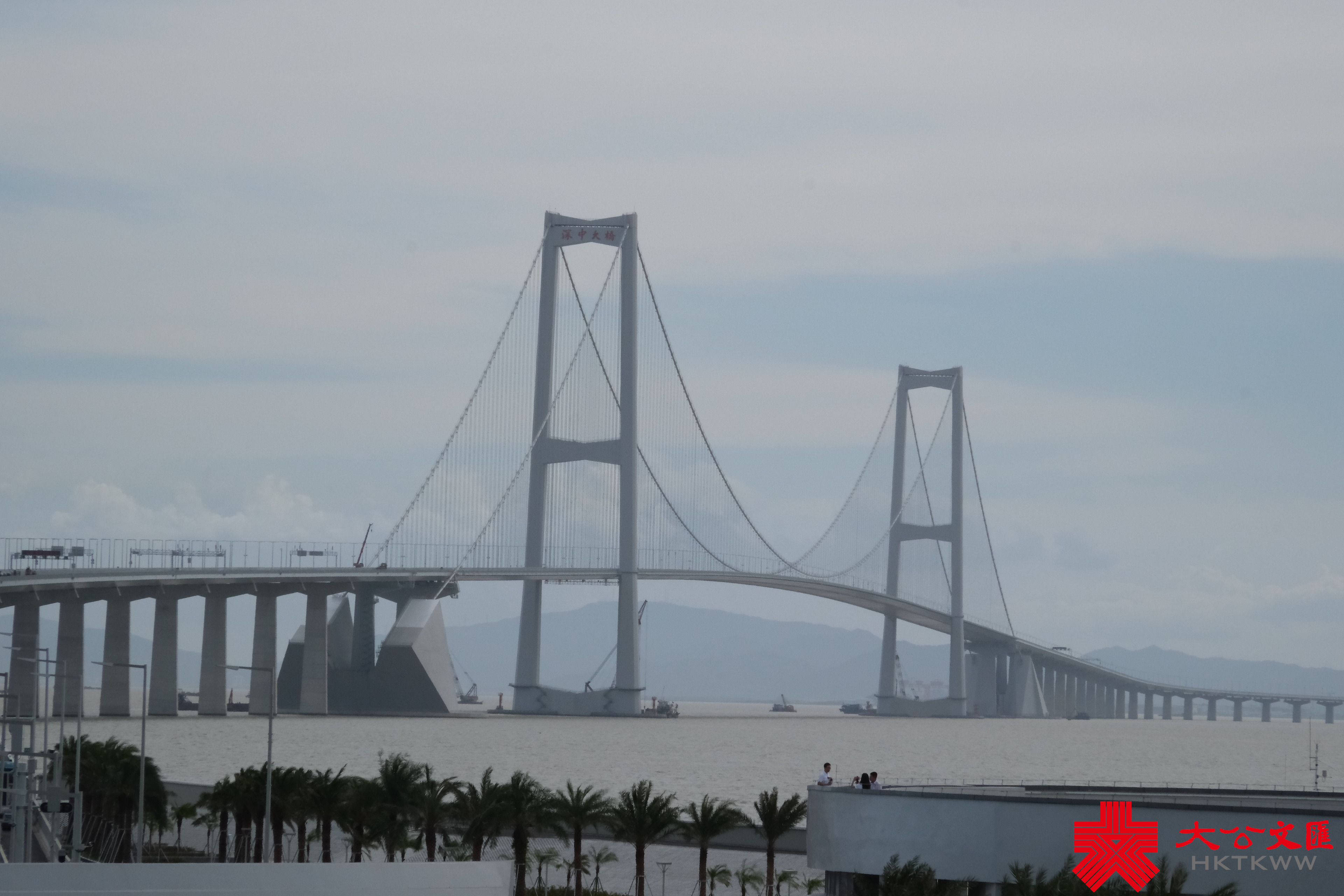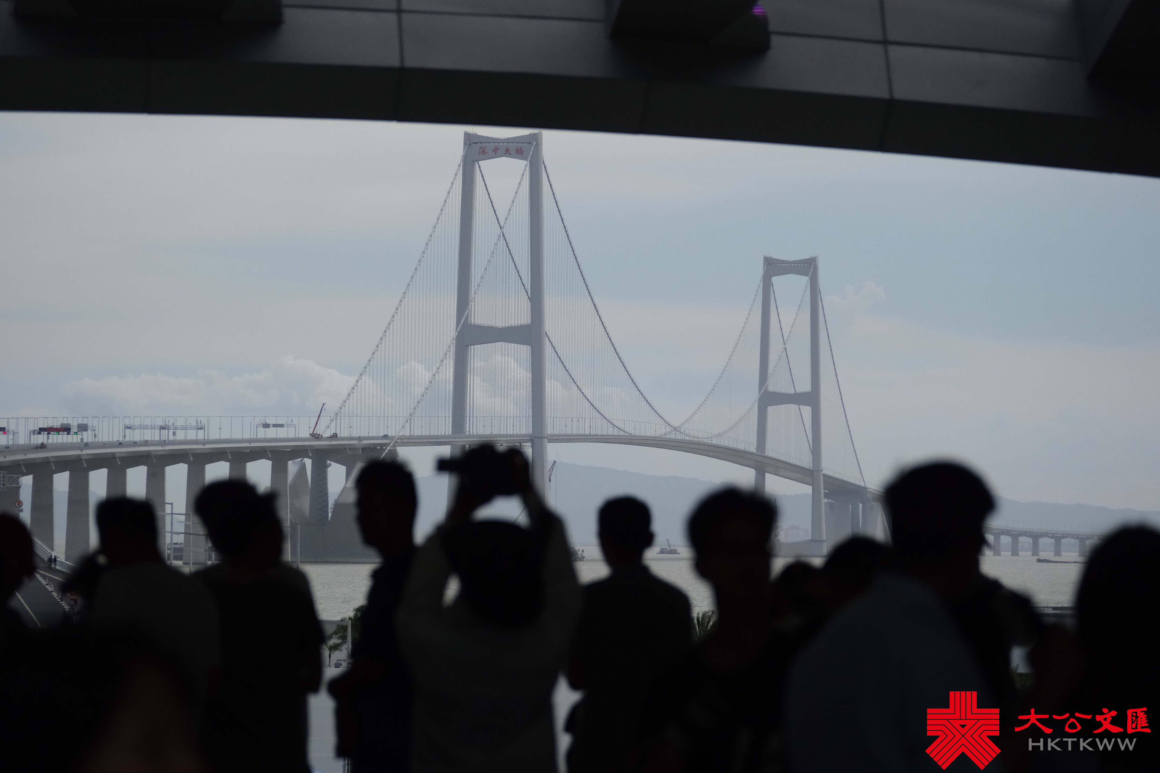 記者27日下午參加通車前最後一次媒體開放日活動,再次打卡深中通道。記者乘大巴從中山段上橋,往深圳方向行駛,左手邊經過南沙萬頃沙,右邊可以看到淇澳島和深圳的黑沙灣。今天天氣晴朗,藍天白雲,途徑黑沙灣時記者還可以看到後方的香港屯門區。
