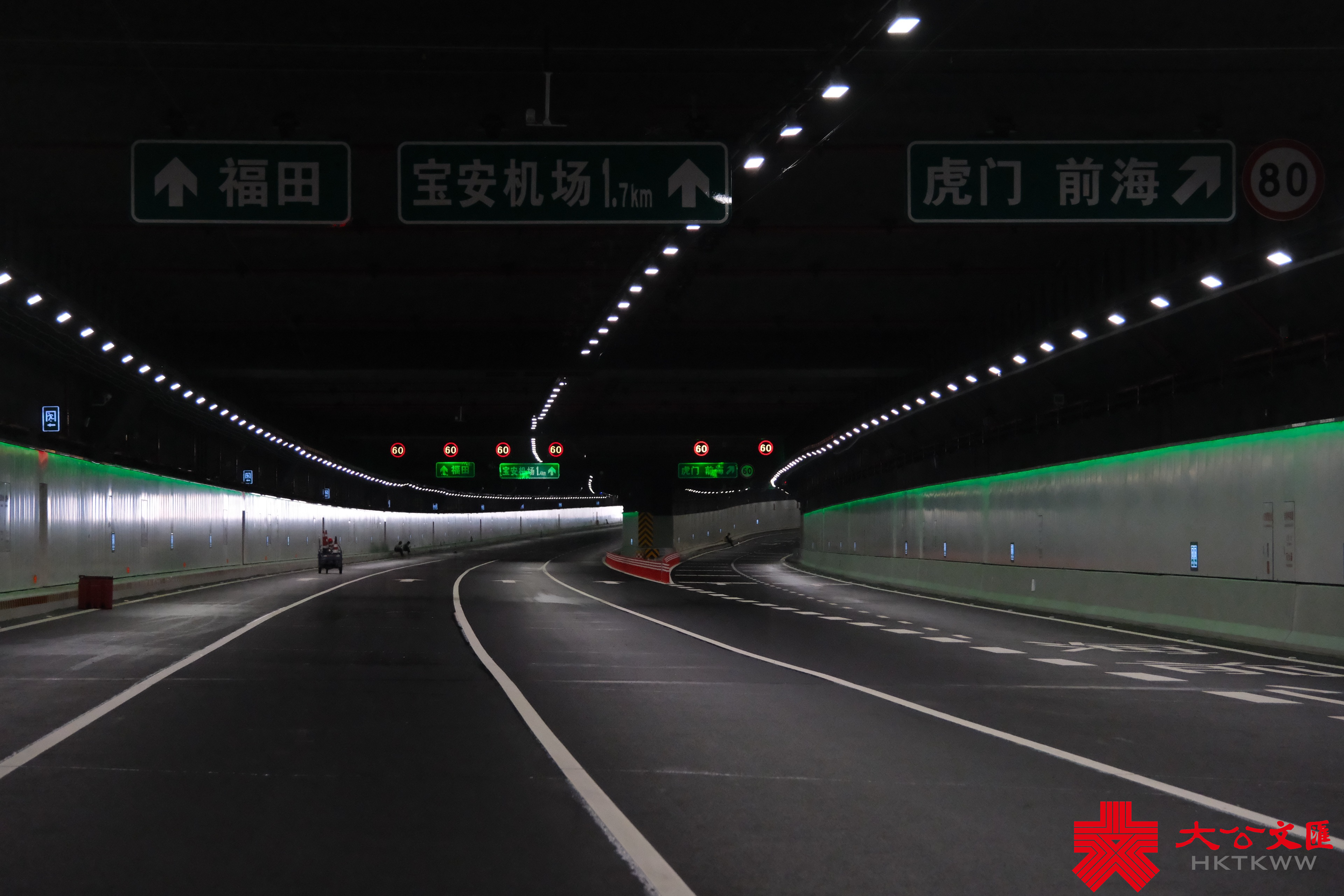 自中山側向東行駛,經深中大橋、海底隧道後,在隧道內水下互通設第一個高接高匝道,駛出後接入廣深沿江高速,可前往虎門和前海、香港方向;自主線隧道直行駛出海底隧道後,第一個收費站出口駛出,可前往深圳機場與深圳寶安區;自主線直行,接入機荷高速,可前往深圳市區和龍崗區、惠州等;前行後可高接高轉入廣深高速,前往深圳市區或東莞。