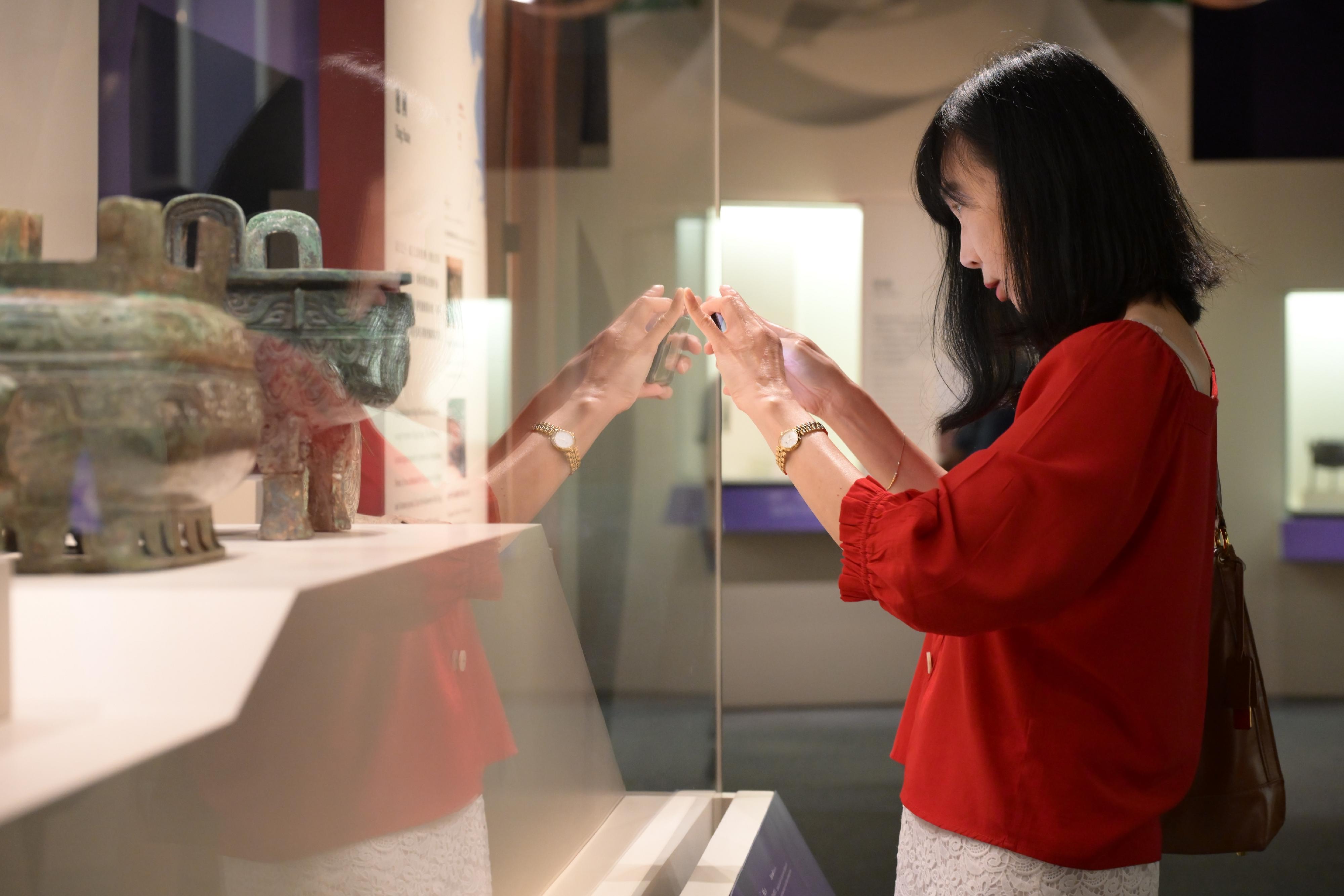 第15萬名參觀者是大學生張小姐,她對中國歷史文化有濃厚興趣,今日特地相約朋友一起參觀展覽,印象最深刻的展品是國家一級文物「王子午」鼎。張小姐說,從展品中欣賞到夏商周時期精細的功藝,加深對中華文化的認識。她亦非常喜歡在教育互動區中壓印青銅器紋飾明信片的體驗。