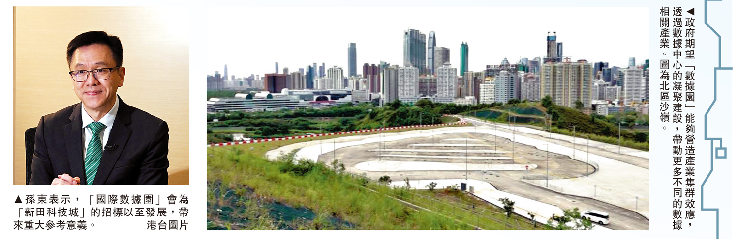 孫東指出,有關沙嶺用地周邊有山坡、斜坡等,或可提供合共十多公頃土地,相信能為進駐企業提供很好的條件,故打算在「國際數據園」內,亦引入創意產業及初創企業。
