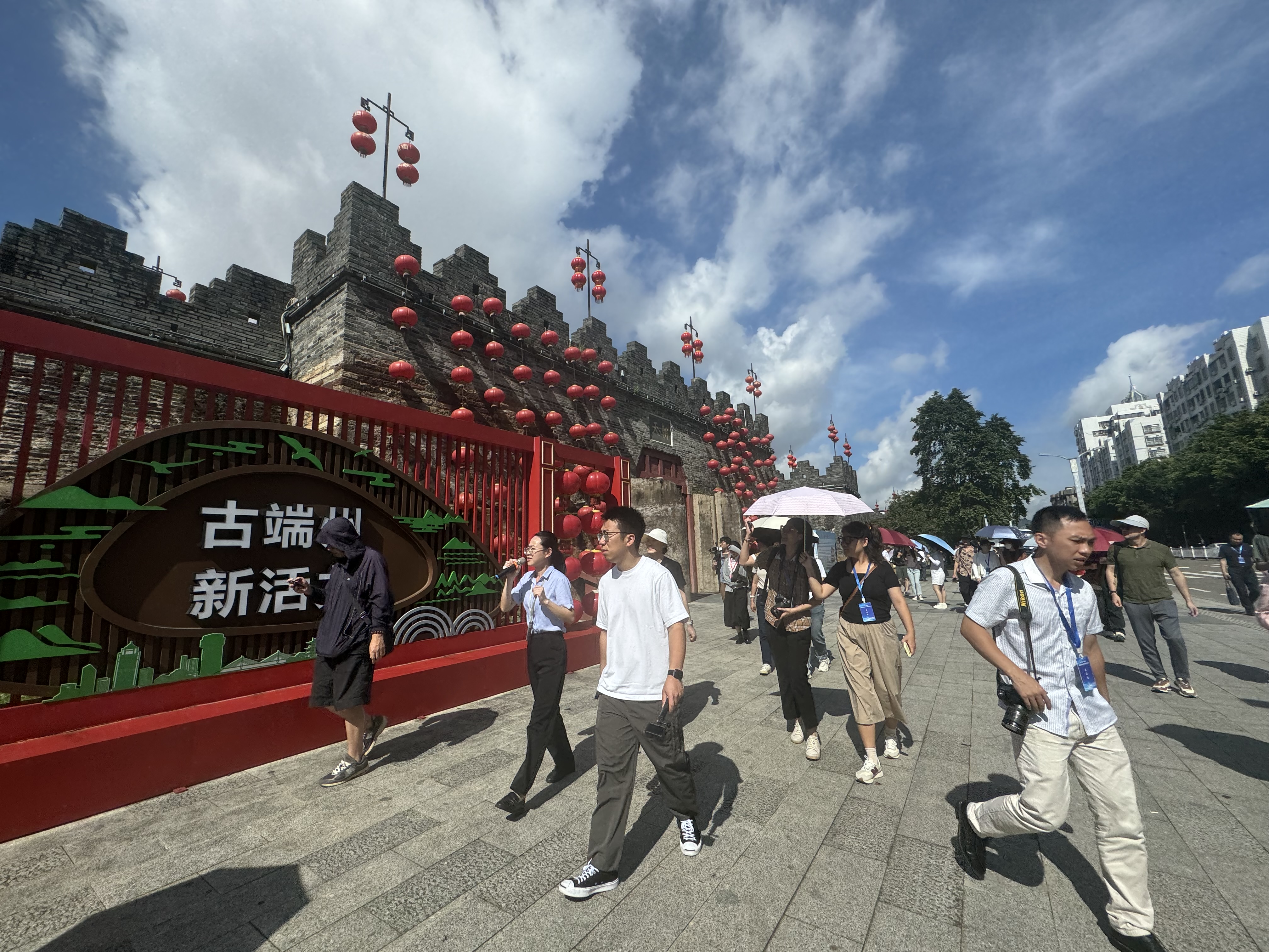 採訪團還走訪了肇慶宋城牆。城牆始建於宋皇祐年間,初為土城。後來拓為磚城,經過多次修繕保留至今。肇慶古城牆是國內為數不多、廣東僅存的宋代磚城牆,是古代嶺南城防的傑出代表。肇慶市博物館副研究館員張致政告訴記者,古宋城牆雖然歷盡滄桑,經過二十多次的修葺,古宋城牆的位置未有改變,成為肇慶歷史文化名城的標誌性建築。