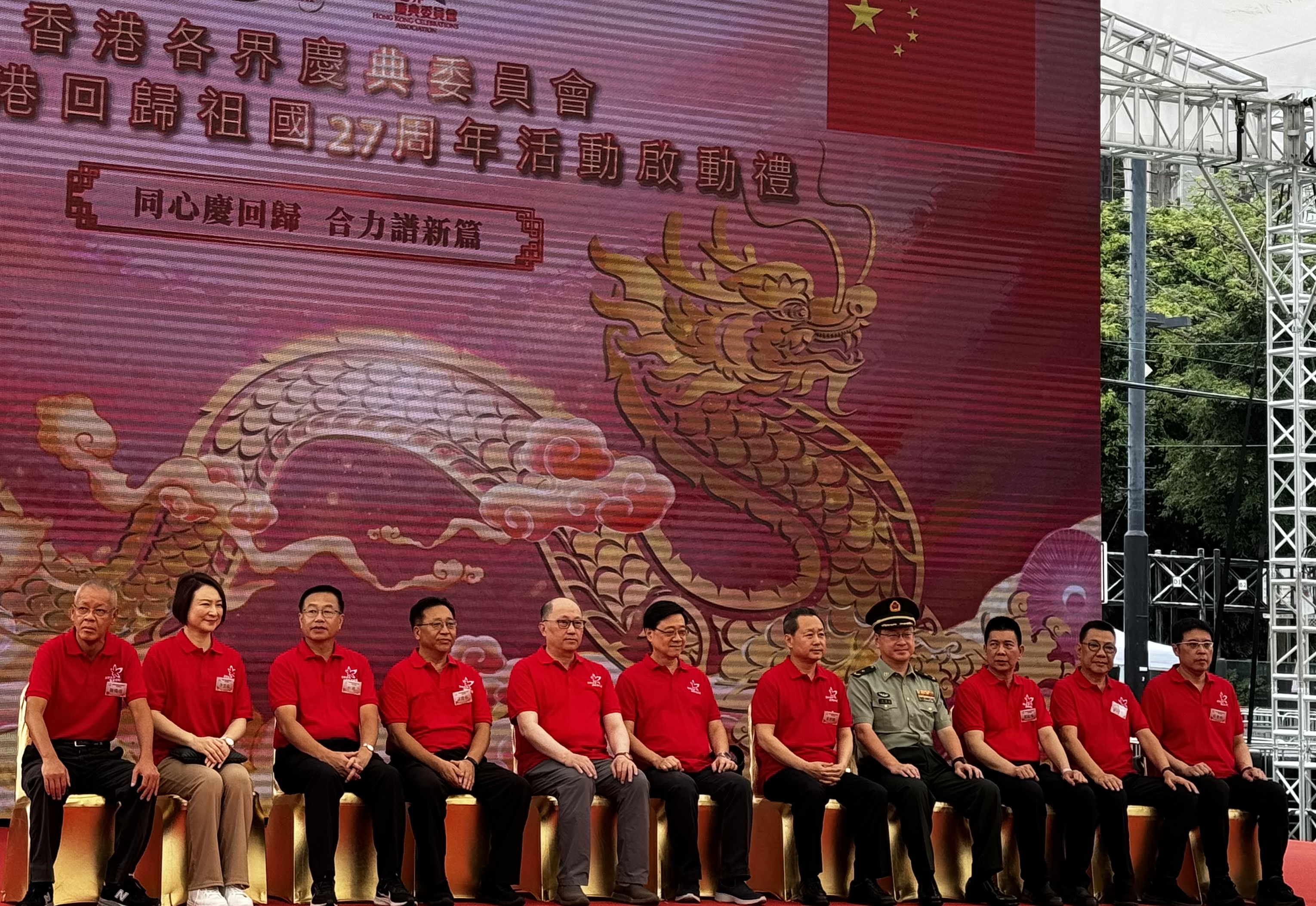 中央政府駐港聯絡辦主任鄭雁雄、副主任何靖,中央政府駐港國安公署副署長李江舟,外交部駐港特派員公署副特派員潘雲東,解放軍駐港部隊政治委員賴如鑫,遼寧省、陜西省、山東省有關方面負責人,特區政府官員,香港各界慶典委員會成員團體代表等共200多人出席啟動禮。