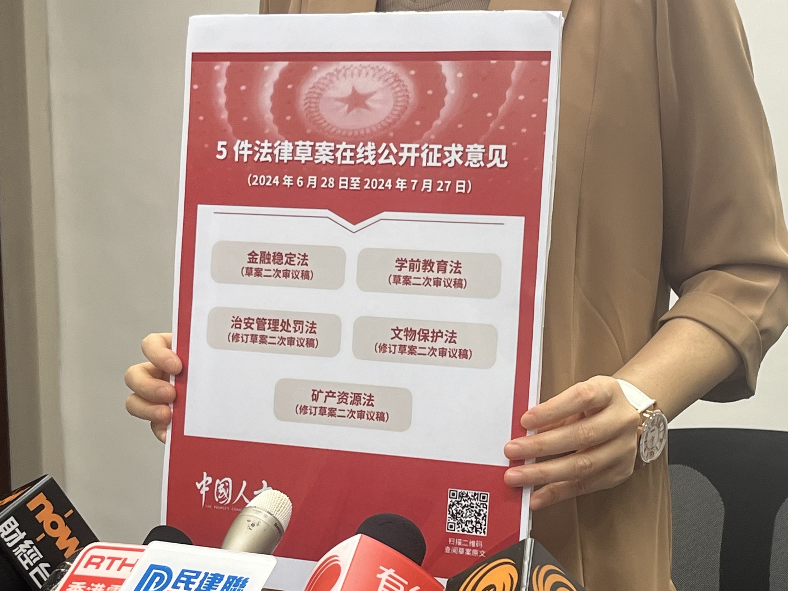 (大公文匯全媒體記者 鄭洢林 報道)全國人大常委會委員李慧琼今日(29日)見媒體,分享總結出席十四屆全國人大常委會第十次會議感受。她表示,本次會議主要審理並通過多部法例,亦有五件法案在線公開徵求意見,分別是《學前教育法》(修訂草案)、《金融穩定法》(修正草案)、《治安管理處罰法》(修正草案)、《文物保護法》(草案)、《礦產資源法》(草案)。李慧琼指,這體現國家「全過程人民民主」,市民可在二審期間,通過中國人大網反映對相關法案的意見。