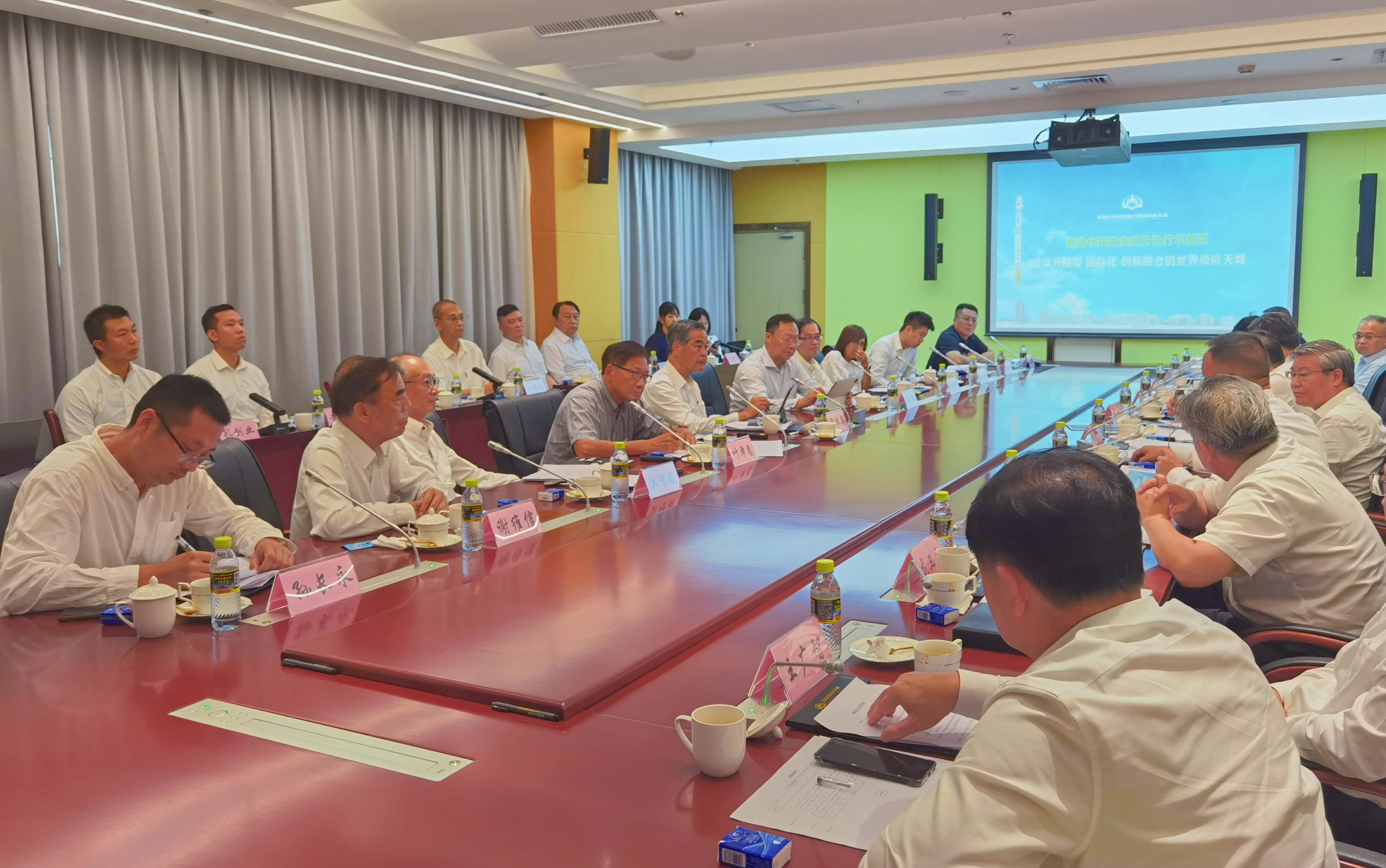 座談會上,調研組一行圍繞「加強瓊港合作,推動商業航天高質量發展」的主題,聽取文昌國際航天城建設發展情況匯報,介紹瓊港合作項目有關情況,並與海南相關部門、園區、企業負責人交流互動。