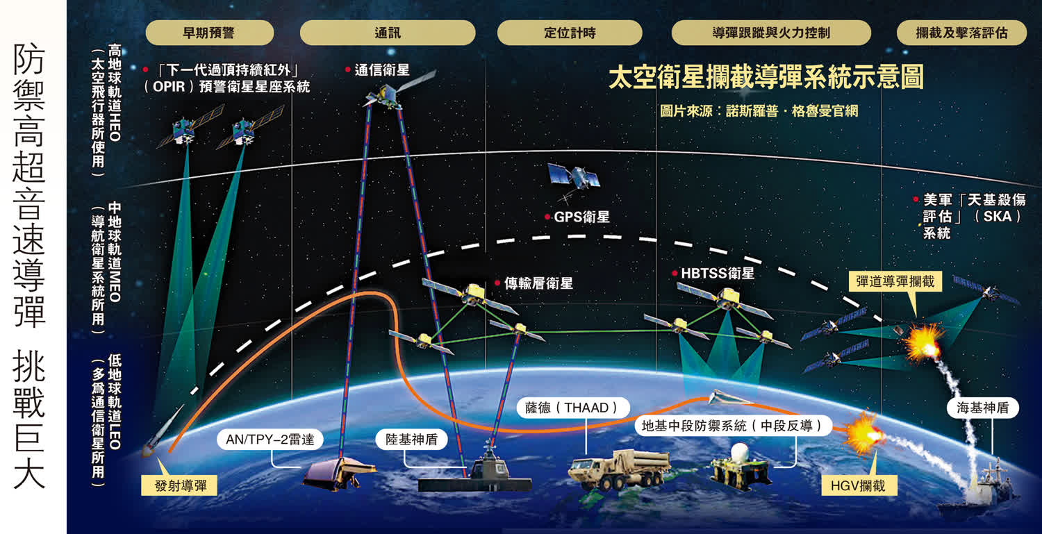(大公報 特約撰稿人 石江月)發展高超音速武器,已成為未來軍事競爭的重要領域之一,多國正大力競相開發。高超音速武器速度快、難追蹤,對地面反導系統形成重大的挑戰。而開發太空衛星系統,則被視為防禦高音速導彈的「盾」。有的國家,比如美國,正積極部署各種先進的衛星網絡系統,打造太空「天眼」,構建密不透風的「天網」。未來,隨着衛星技術的不斷進步和應用範圍的擴大,太空領域的競爭將更加激烈。