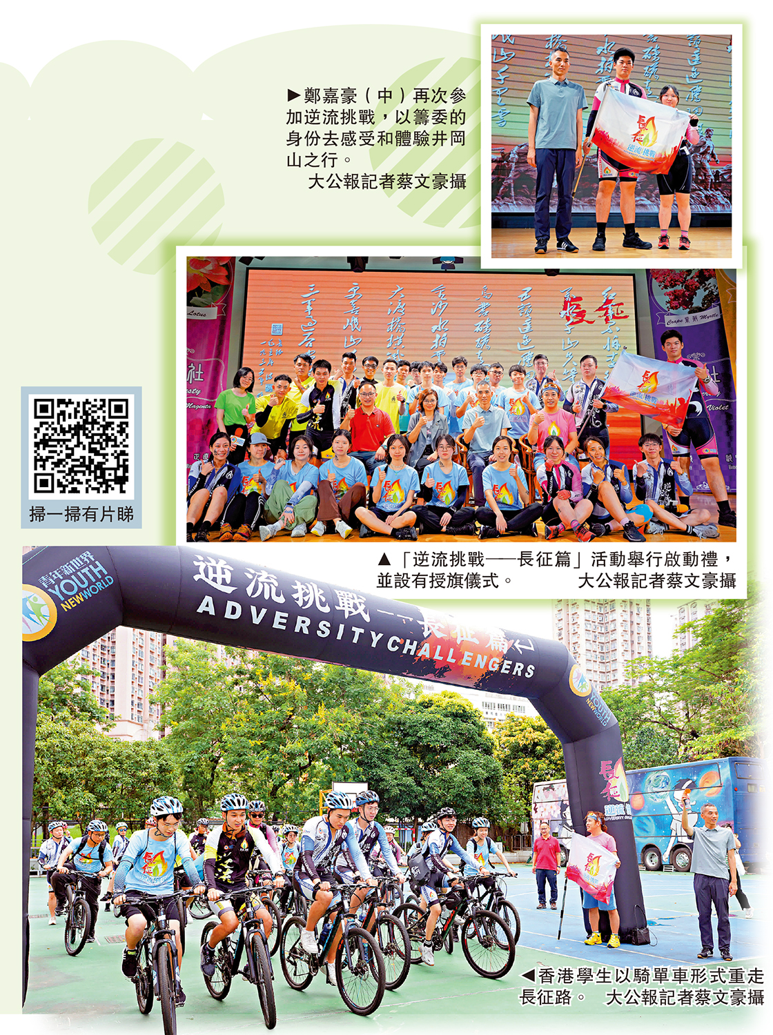 參加者鄭嘉豪是香港專上學院的學生,去年完成香港中學文憑考試後,在人生第一個大長假,決定參加逆流挑戰活動,到四川四姑娘山騎行。今年他再次參加逆流挑戰,以籌委的身份去感受和體驗井岡山之行。他說,「在香港從小在溫室中長大,以往只在歷史書中了解到長征,今次是難得的機會親身走長征路,認識和感受長征年代的環境。」他說會帶着感恩的心踏上長征路,「在那個物資匱乏的年代,長征先烈們以堅毅的精神,艱苦地走出一條路,貢獻自己,非常值得我們學習。」