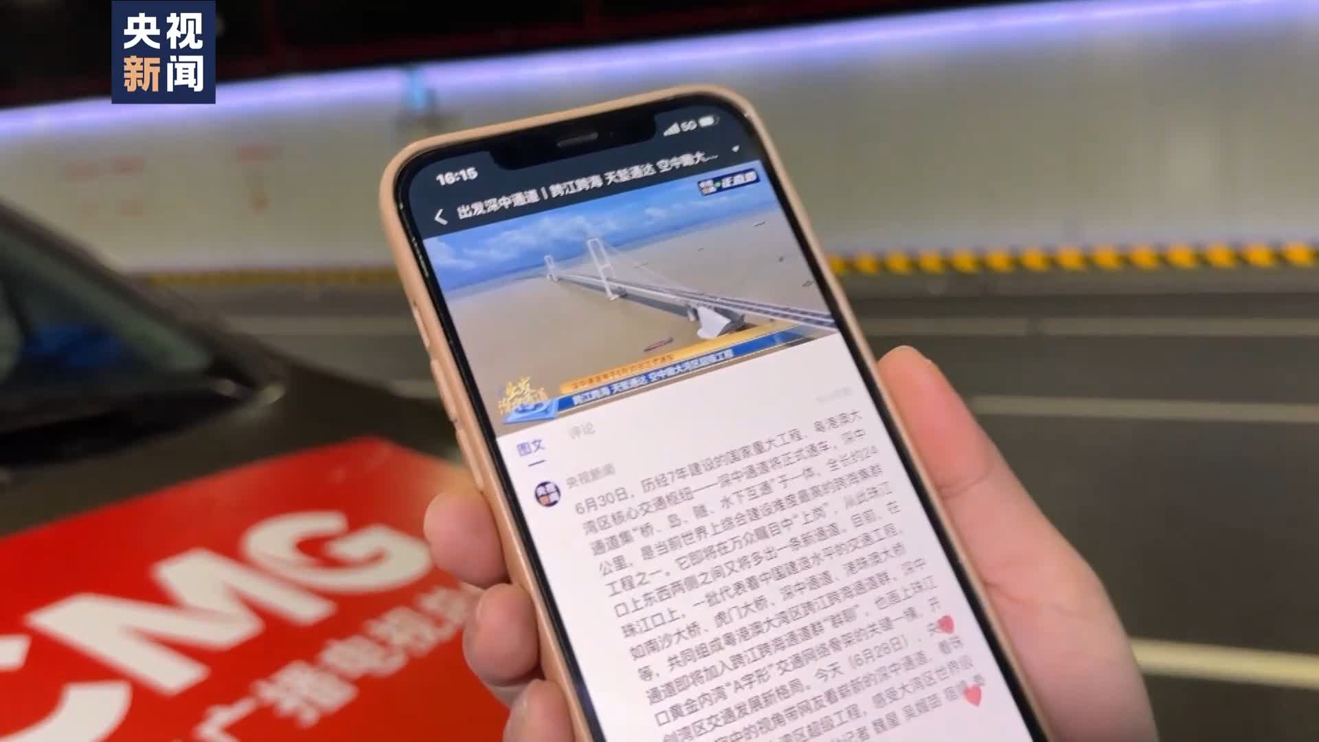總台央視記者陳晰在深中通道的海底隧道測試了手機信號。他點開央視新聞客戶端,點一下正直播,可以看到,深中通道海下接近40米的地方,央視新聞客戶端的直播依舊清晰流暢。