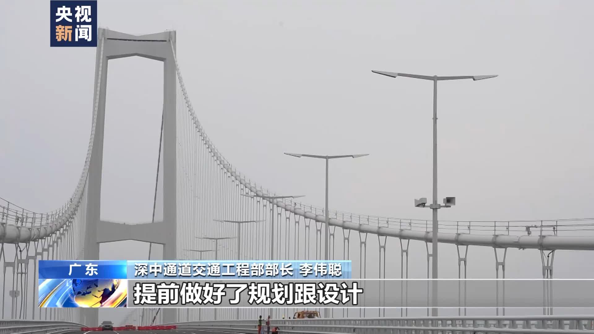 總台央視記者陳晰說:「在深中大橋主跨中部,橋面距離海面超過90米,手機信號依然是滿格的。大家往遠處看,路燈桿上掛着一個個白色的小箱子,就是5G基站,整個橋樑段包括東西人工島上,一共有73個基站,平均不到300米就設有一個。」