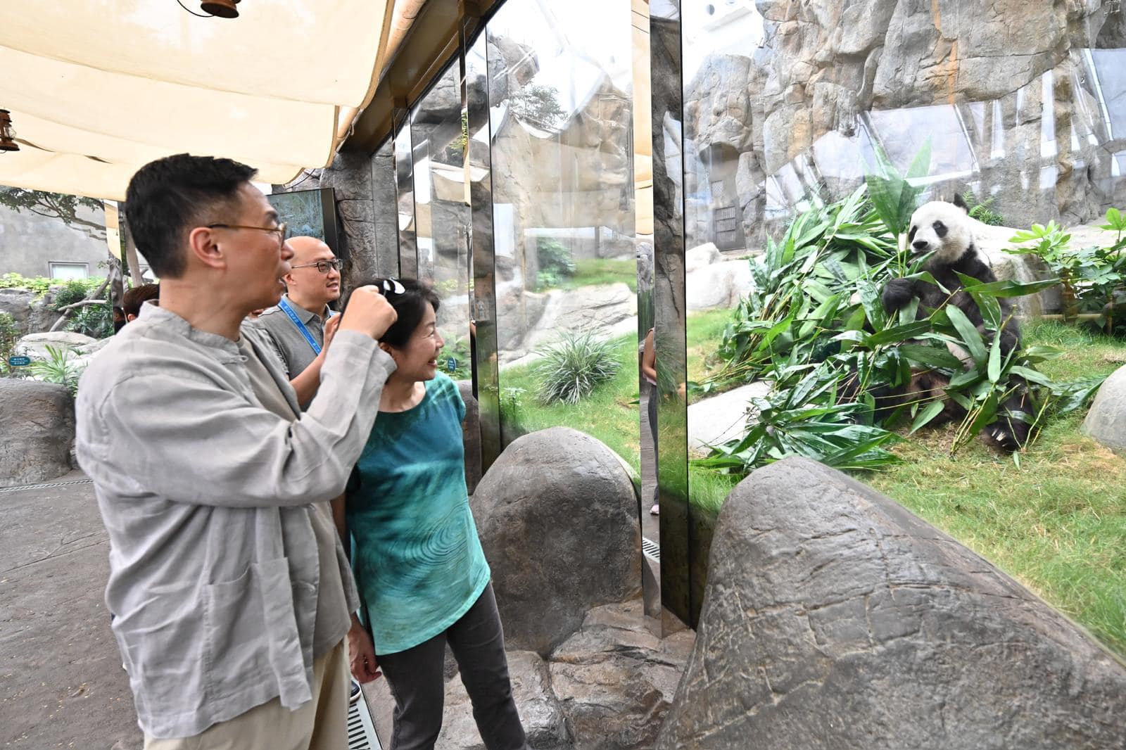 楊潤雄提到,昨日他與旅遊事務專員沈鳳君(Vivian)特意探訪現時在海洋公園居住的大熊貓「盈盈」和「樂樂」,視察牠們的生活情況及居住環境。他表示,相信充滿愛心的飼養員將會為中央今次贈港的一對大熊貓提供舒適的居住環境,讓牠們能夠在香港健康快樂地生活。而新一對大熊貓的加入將會吸引大批旅客和市民來訪,為香港的旅遊業注入動力。