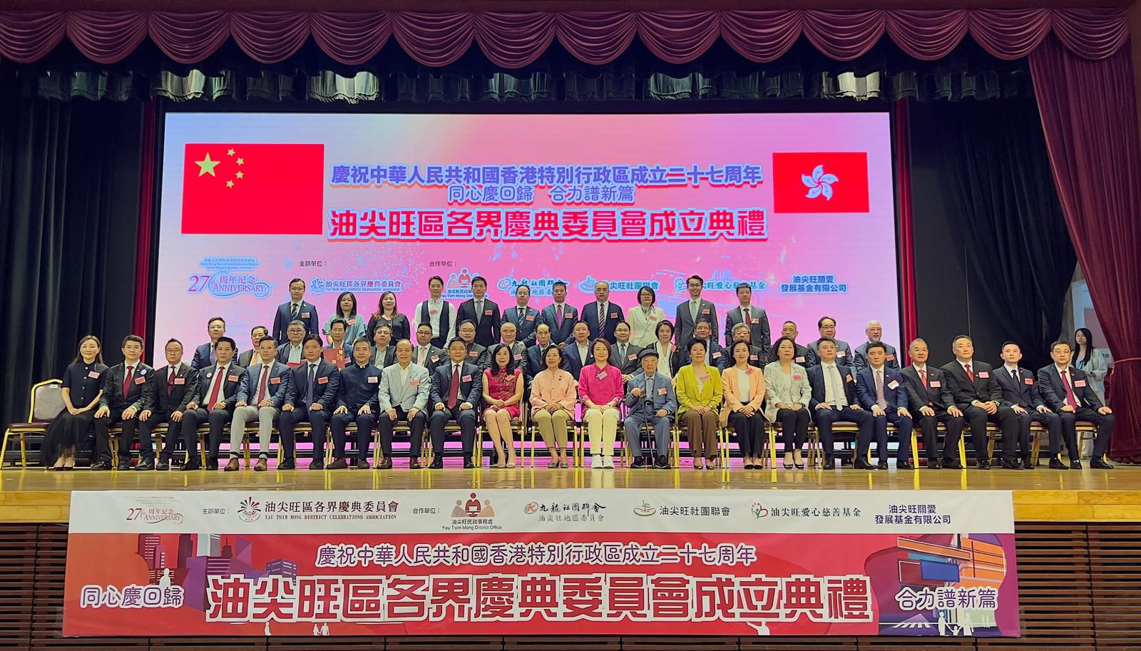 大公文匯全媒體報道,香港油尖旺區各界慶典委員會今日(7月1日)在尖沙咀街坊福利會,舉辦「慶祝中華人民共和國香港特別行政區成立二十七周年 同心慶回歸 合力譜新篇 油尖旺區各界慶典委員會成立典禮」。油尖旺區各界慶典委員會主席陳麗芳致辭表示,未來將以「各界聚力油尖旺,龍騰盛世耀香江」為主軸,希望匯聚社區力量,加強與政府部門以及區議會、三會、關愛隊及地區團體之間的互相聯繫,推動油尖旺區內不同族裔、不同職業、不同階層的人士齊心合力,為建設和諧美好的油尖旺社區努力。