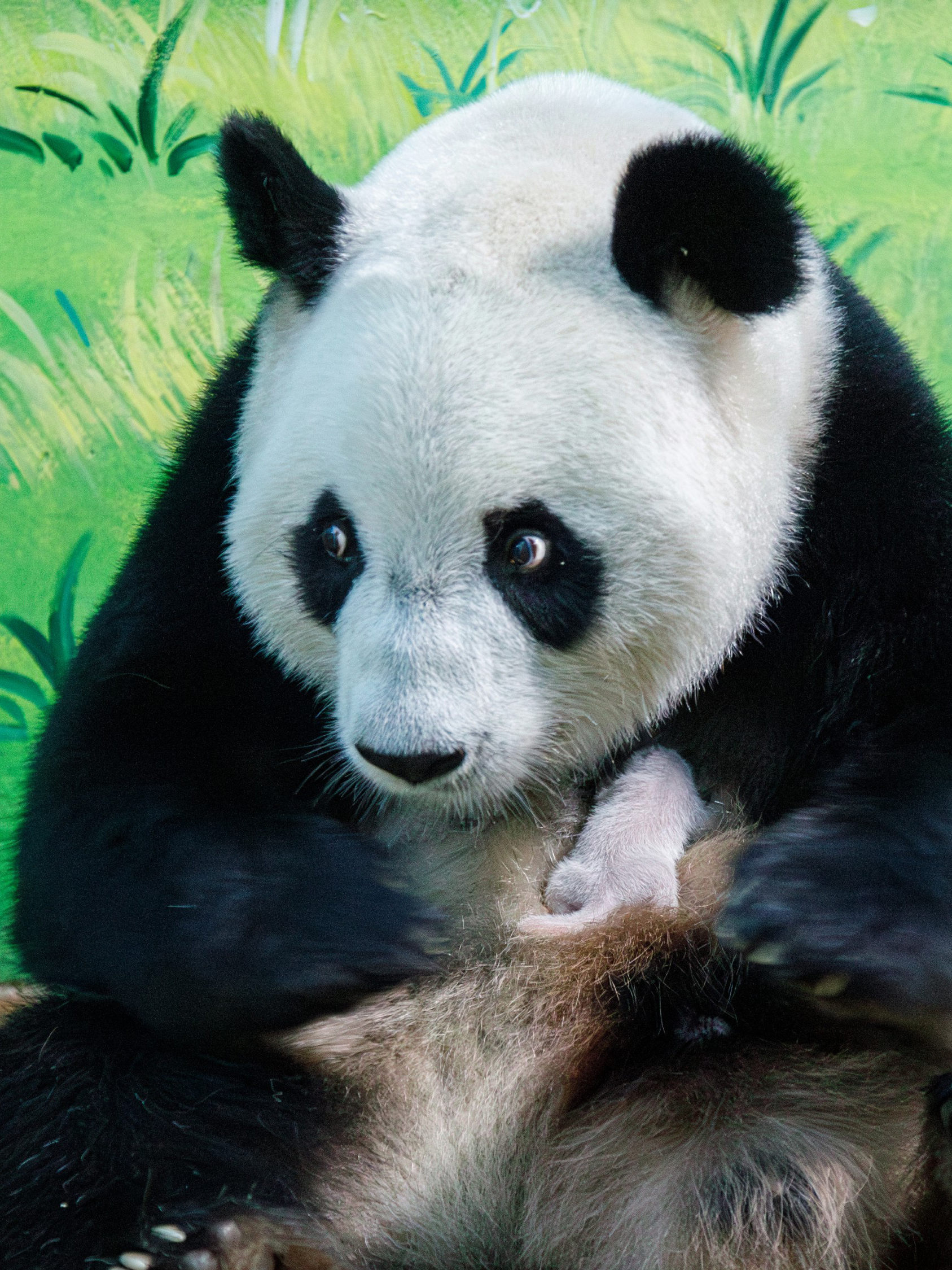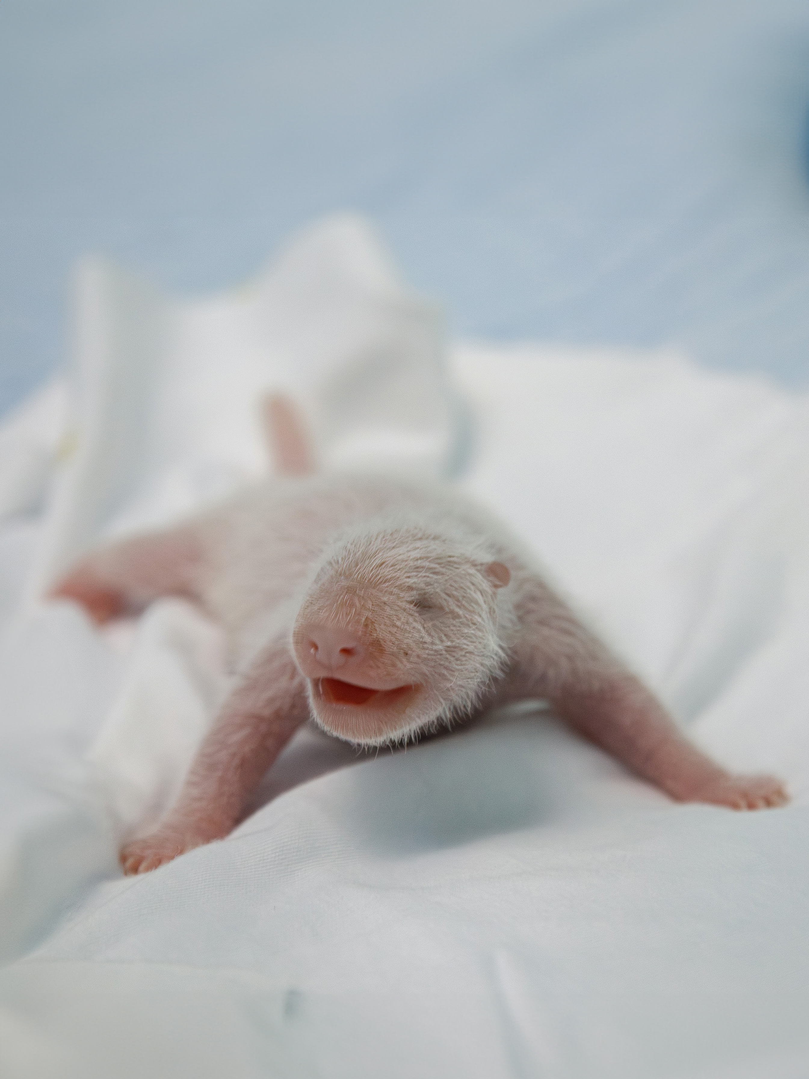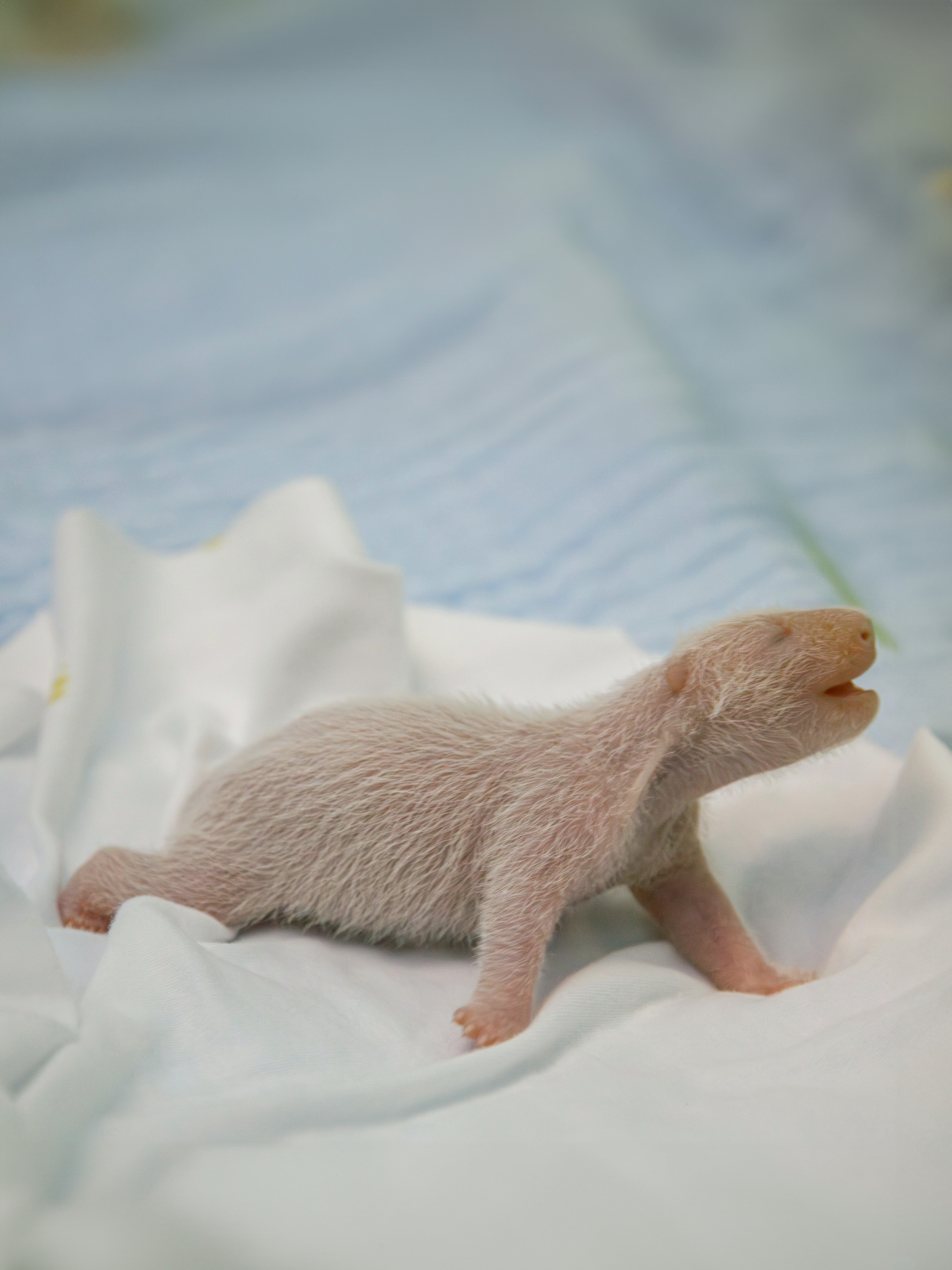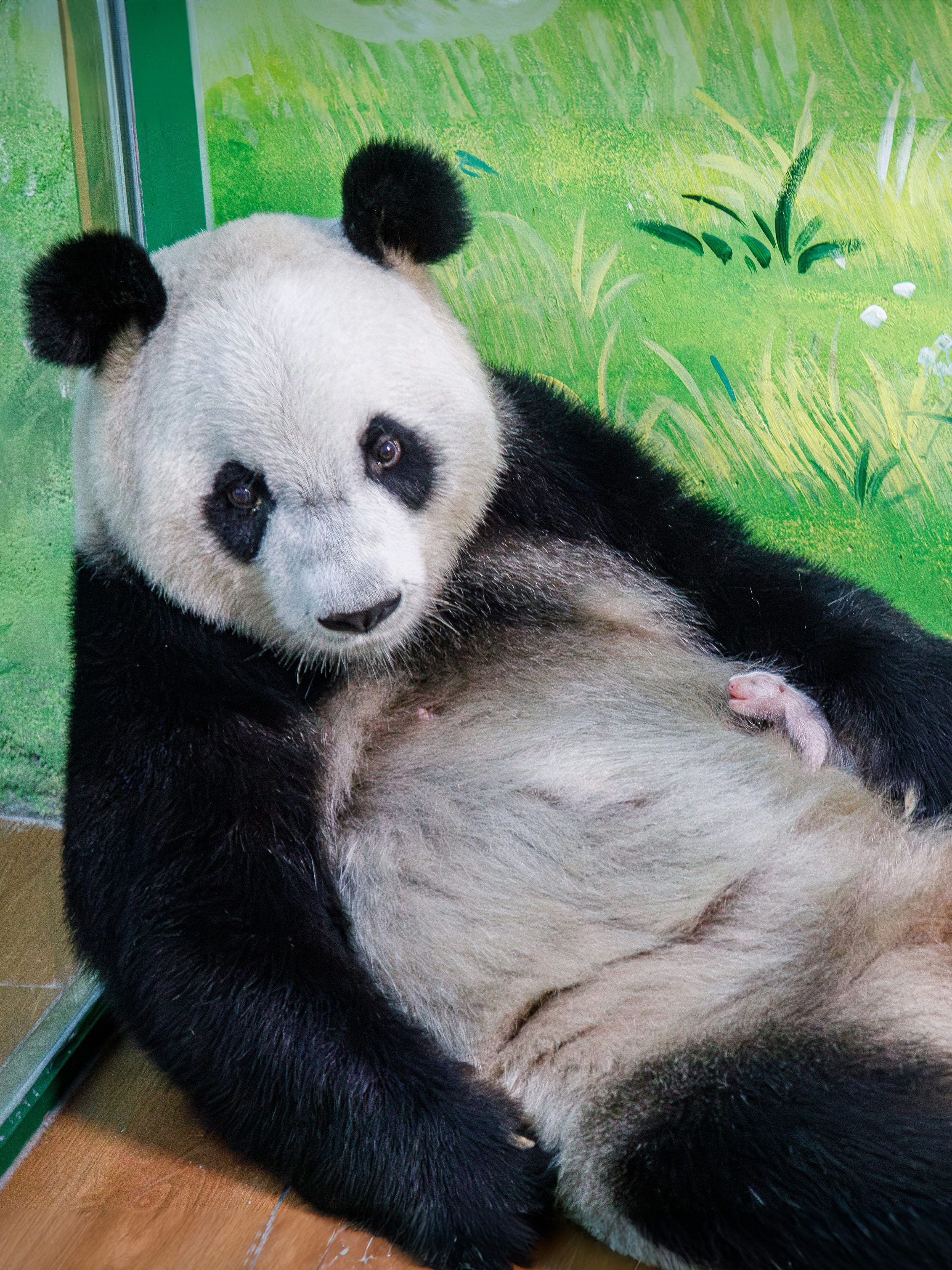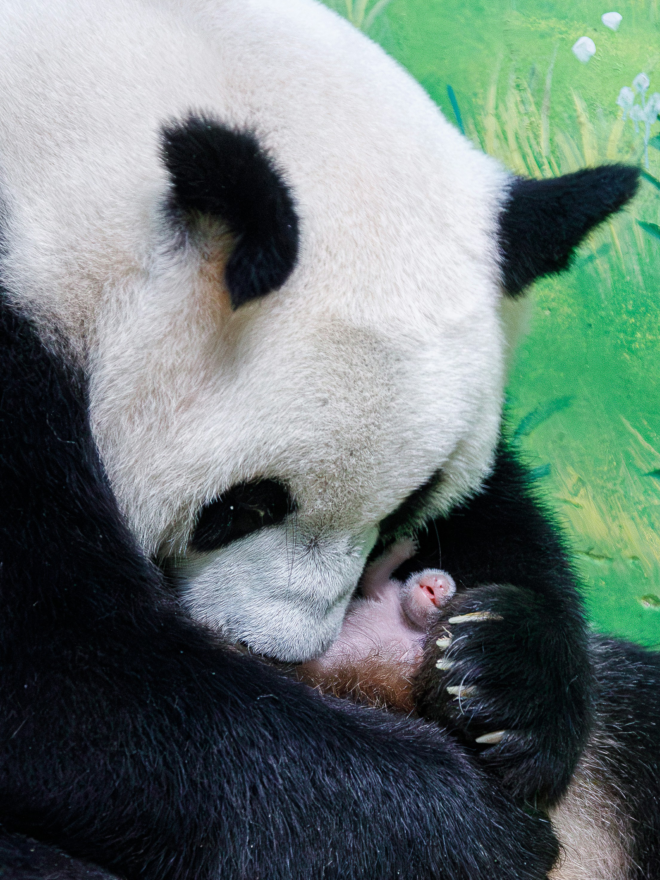 曾經全程照顧「萌萌」媽媽「菊笑」的保育員陳淑青,主導了「萌萌」孕期和產仔的保育工作。青姐表示,園區每天供應十多種新鮮竹子給「萌萌」選擇,直到它挑選到喜歡的「孕期美食」。保育團隊從環境、食物、情緒上給「萌萌」安撫,會按照一天光照方向,安裝不同角度的遮光簾,營造安靜、涼爽的環境。6月18日凌晨3點38分,大熊貓「萌萌」在懷孕128天后,順利產下一胎雌性幼崽,幼崽體重達到178克,小仔出生後叫聲嘹亮、外觀正常,健康狀況良好。如今,新生寶寶粉色皮膚上長出了白色的絨毛,眼圈、耳朵、肩帶、前後肢都已經開始變成黑色,一個小翻身就能萌倒所有人。