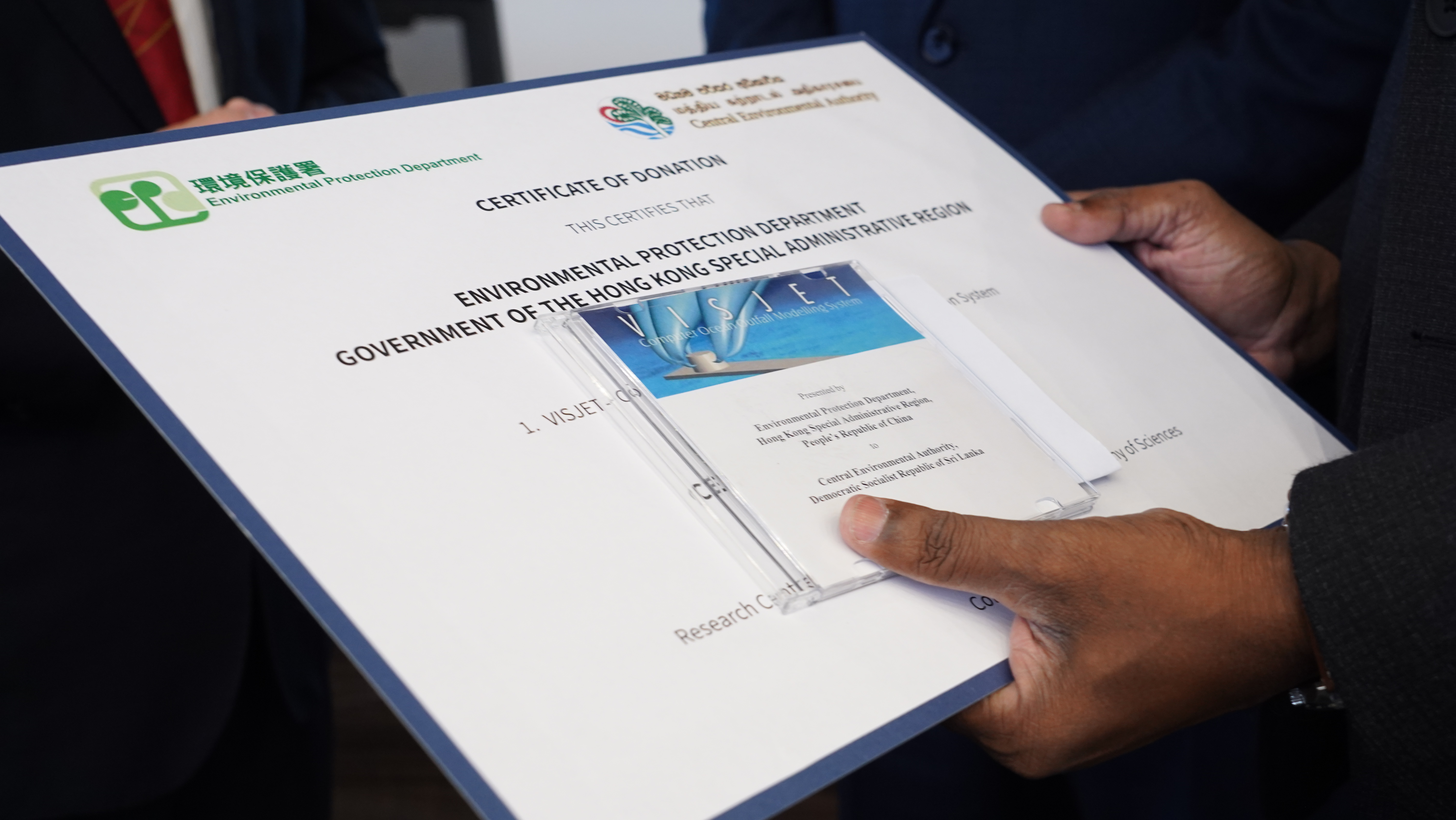 徐浩光代表香港特區政府向斯里蘭卡贈送了兩套分別由環保署空氣科學專家團隊為斯里蘭卡量身開發的智慧空氣模擬平台,以及由香港大學李行偉榮譽教授(現任澳門科技大學校長)團隊開發的電腦海洋排放模擬及可視化軟件「VISJET」,供當地政府和高等院校作應用、科研和學術用途。