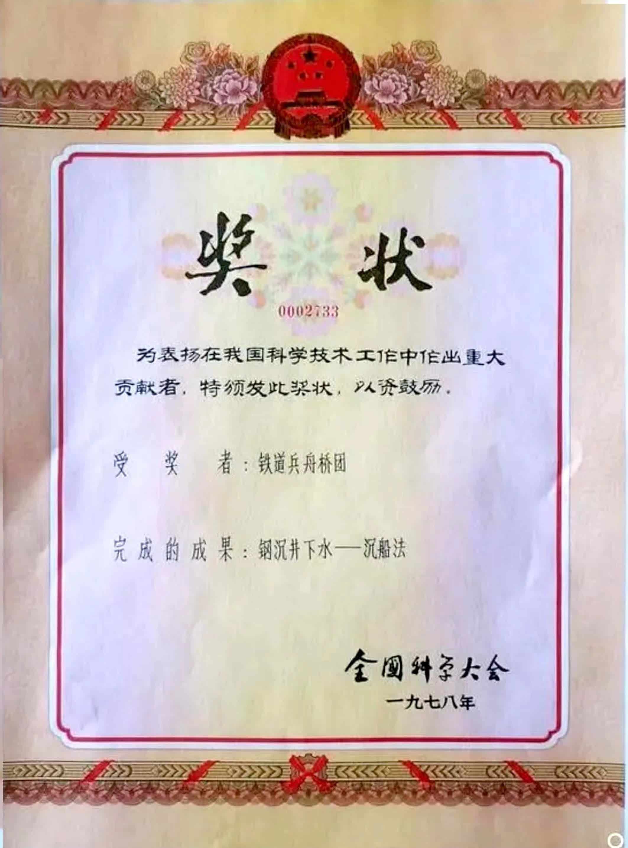 這是當時中國科技界的最高榮譽,是舟橋工程技術人員敢於創新勇攀科技高峰的歷史見證。
