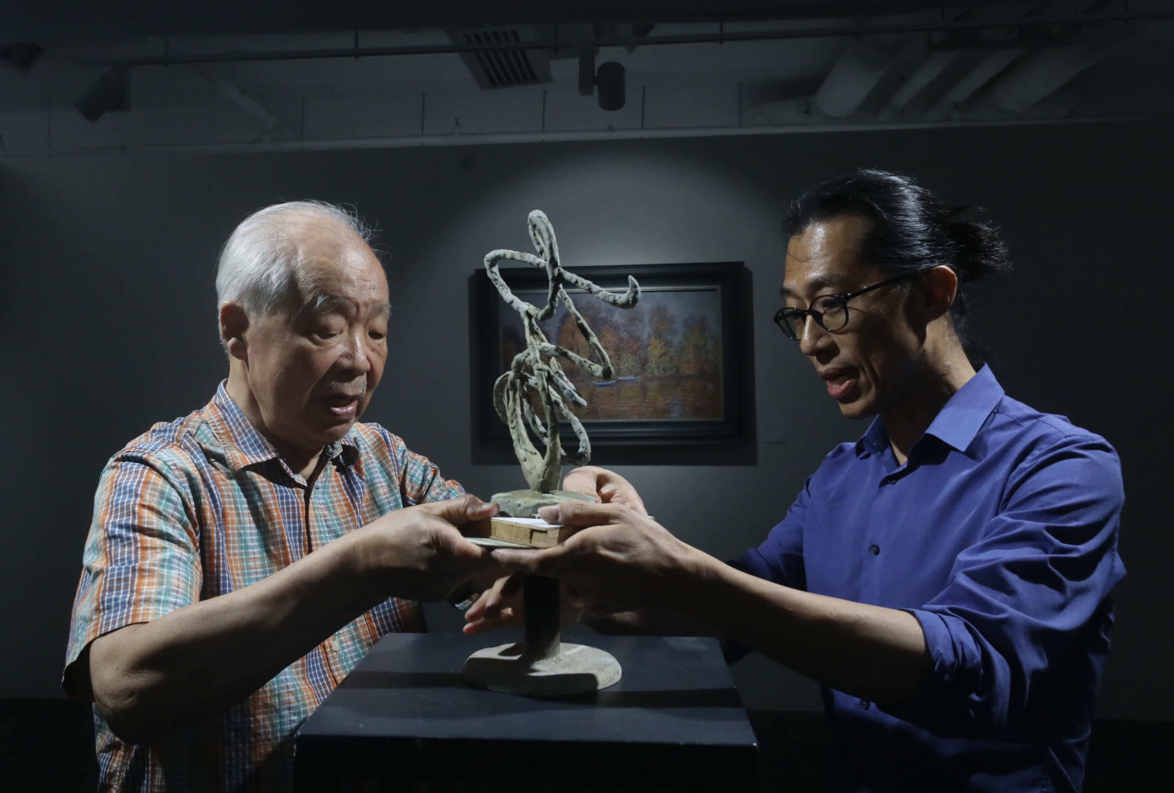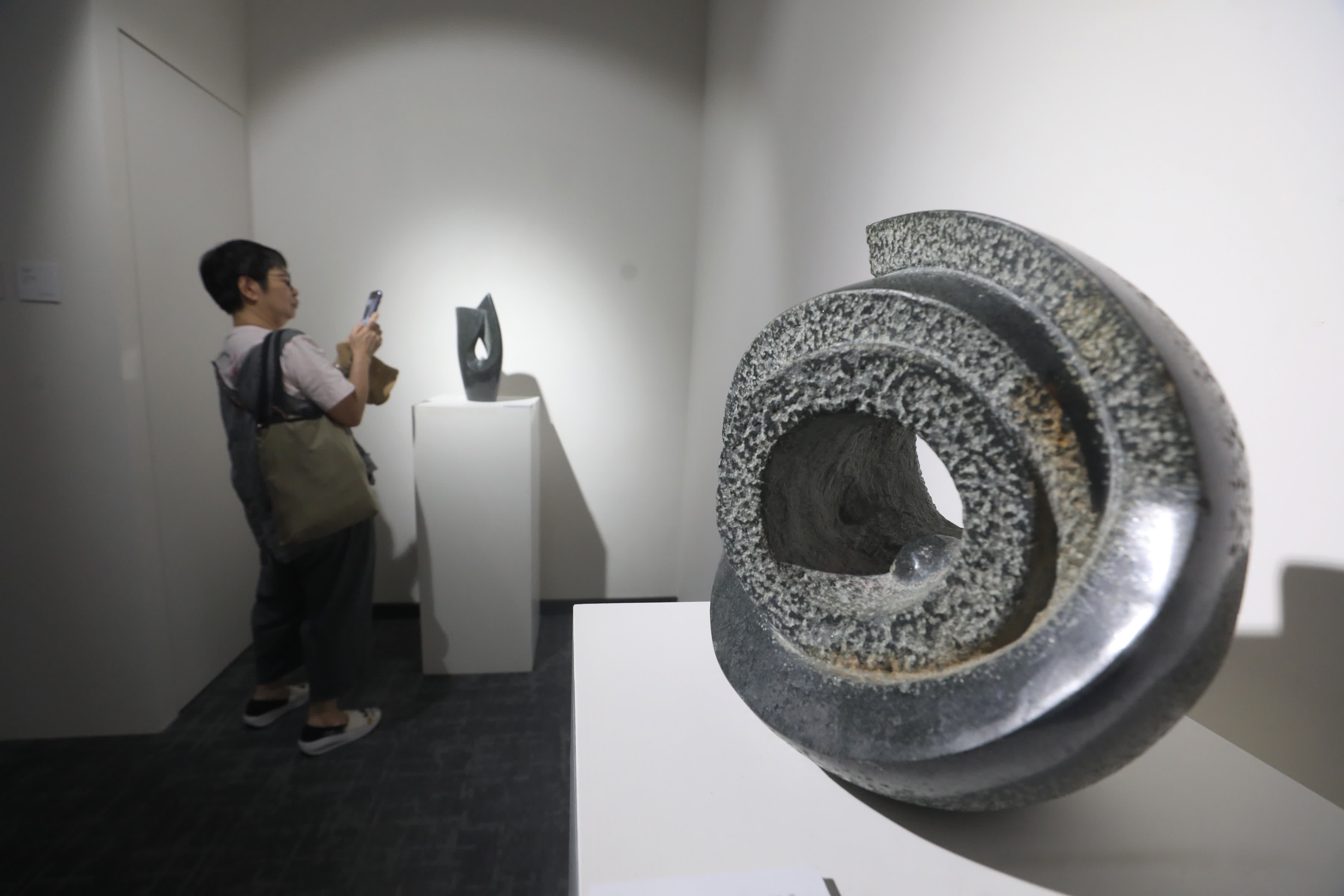 雕塑家朱達誠帶來作品《天地間》,作品的旋轉體之中有一個小小的球體,代表地球,黑雲石打磨成黑色後,外用鐵工具擦出粗糙的切面,仿若星雲。朱達誠說:「我喜歡在實體之中有個洞,令觀者的視線可以穿過去。亨利•摩爾曾說,如果你的面前是一堵牆,你不會覺得有空間,但若是一道門,就有空間了。我希望雕塑是一扇打開的門。」