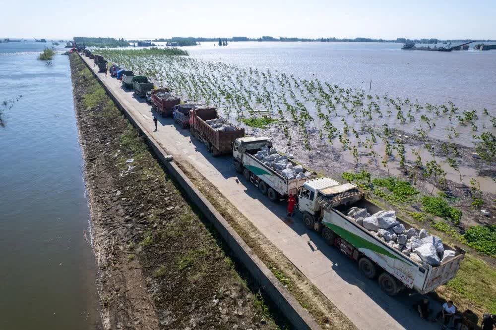 7月5日,湖南省岳陽市華容縣團洲垸洞庭湖一線堤防發生決口險情後,當地黨委政府和有關部門迅速行動,全力轉移垸區群眾。來自各地的搶險救援力量迅速匯集,消防、武警和民兵等組成的搶險隊伍正在緊張地封堵決口,加固間堤,運送搶險物資,確保人民群眾生命財產安全。
