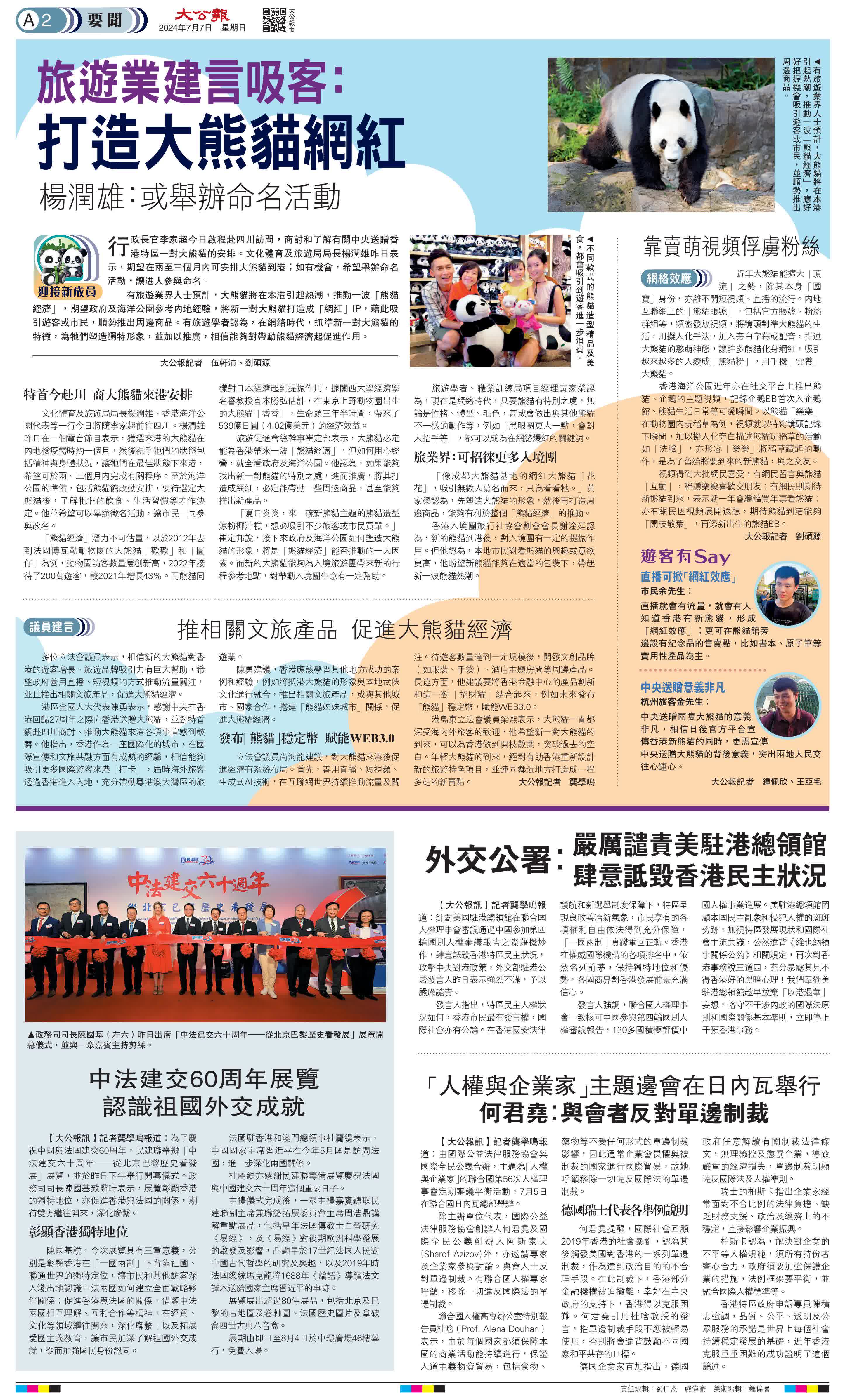 「夏日炎炎,來一碗新熊貓主題的熊貓造型涼粉椰汁糕,想必吸引不少旅客或市民買單。」崔定邦說,接下來政府及海洋公園如何塑造大熊貓的形象,將是「熊貓經濟」能否推動的一大因素。而新的大熊貓能夠為入境旅遊團帶來新的行程參考地點,對帶動入境團生意有一定幫助。
