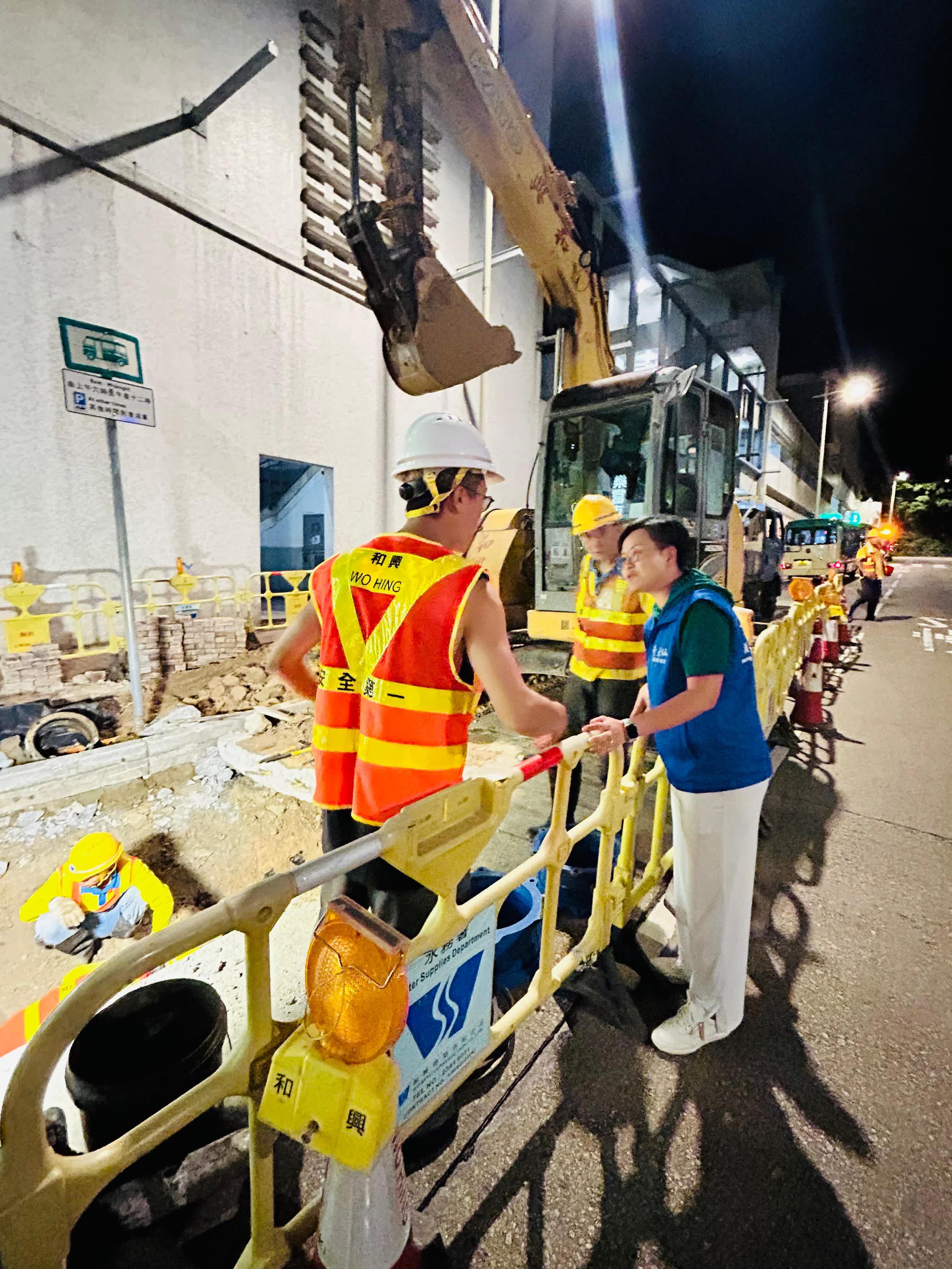 民政處、關愛隊及一眾區議員一直在樂富邨內留守至凌晨,直至恢復供應食水,歷時逾十小時。在水務署全力搶修下,在今天(7月7日)凌晨一時多已恢復食水供應;惟邨內的一段鹹水供水管仍需維修。
