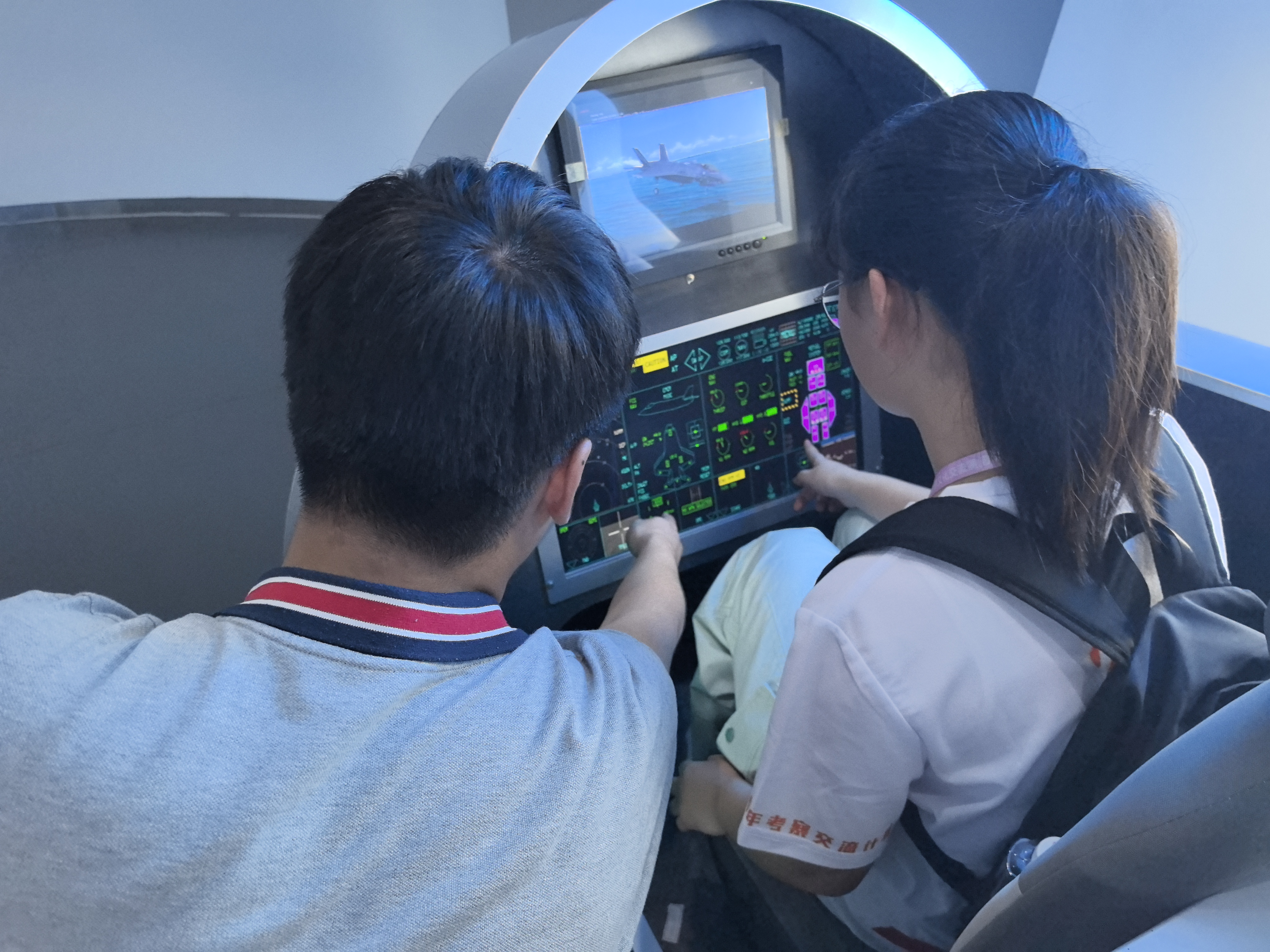 最受歡迎的課程之一,莫過於在學校科創中心的航空課程。在學校特色的「飛行·創想」創新實驗室,同學們兩人一組,爭相坐進國產大飛機C919同等比例模擬機艙,親手「操控」飛機的起飛和着陸。當然,並非每組的操作都很順利,「墜機」和「硬着陸」的驚險也時有發生。通過「失敗」,宜川中學的老師也更加有針對性地向同學們講授了飛機駕駛的基本技巧,讓大家在歡聲笑語中收穫新知。