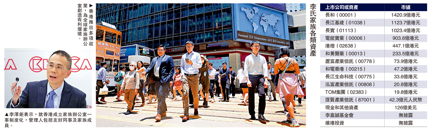 李澤鉅昨日在回應傳媒查詢時表示,李氏家族一直於香港進行不同的投資,並會就於香港成立家族辦公室一事制度化,管理人包括共事多年的友好同事以及家族成員。