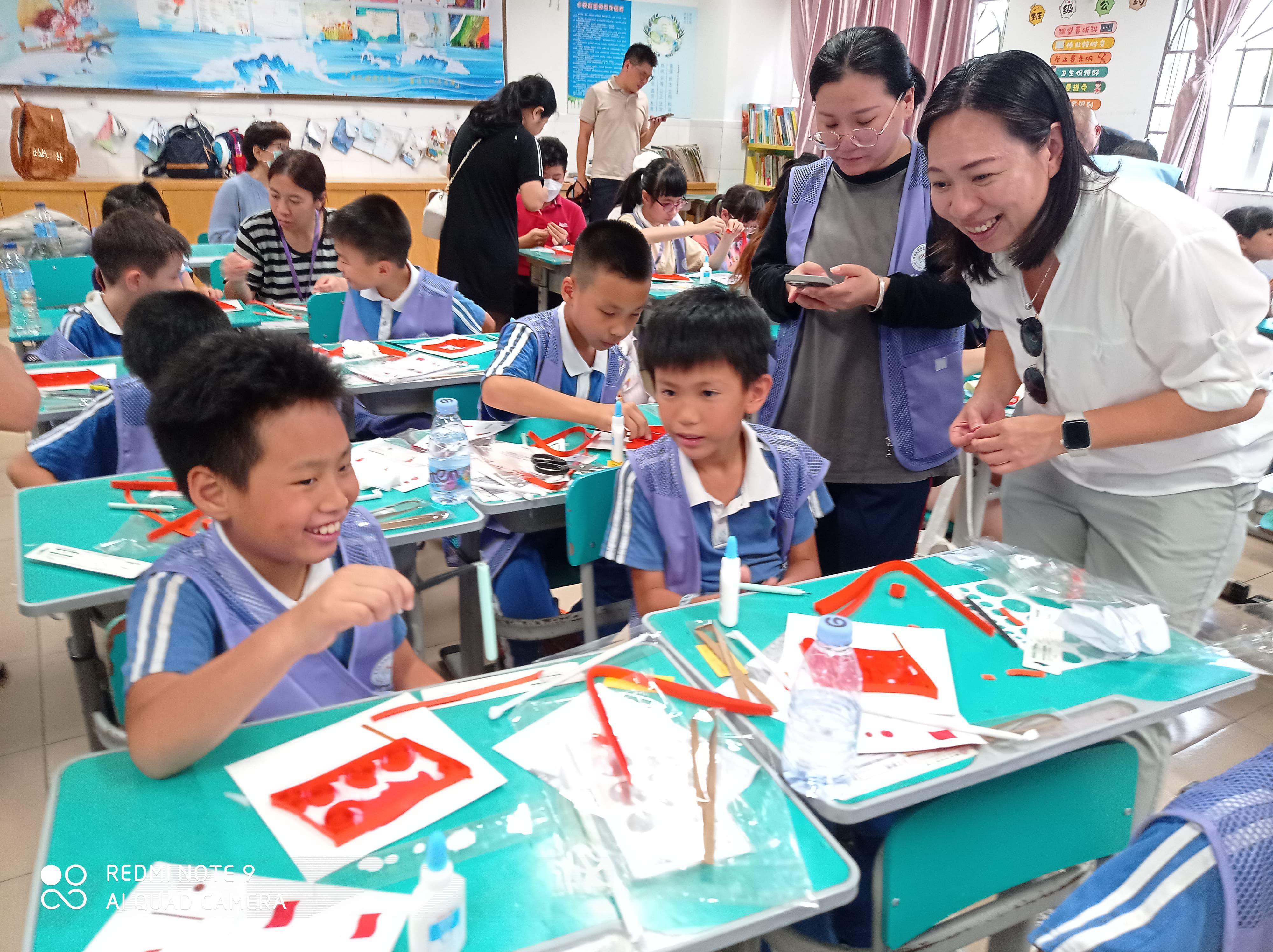 參觀完博物館,行程的最後一站來到深圳市碧波小學,港深兩地青少年一齊參加了製作國旗相框的工作坊。大家十分專注,交流互動,共同在五星紅旗之下親手製作出一幅幅充分愛和熱的五星紅旗相框,為慶回歸活動兩地交流活動劃上完美句號。